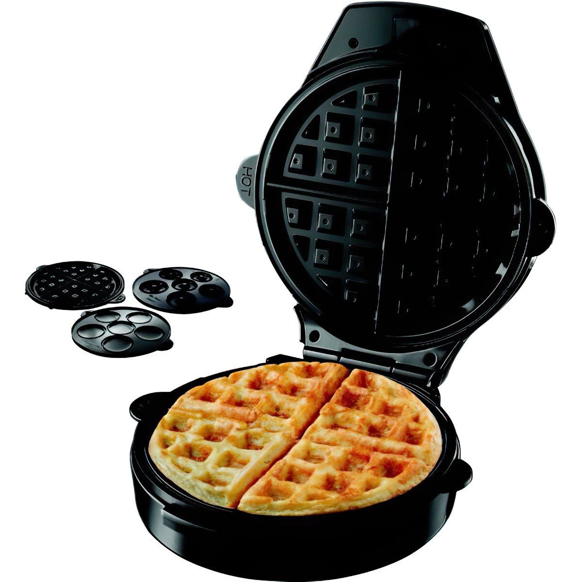 Oснащення:Індикатор роботи, Антипригарне покриття, Вертикальне зберігання, Зйомні пластини безпечні для посудомийної машини, Пластини для вафель, Пластини для кексів, Термостійкі ручки, Пластини для пончиків, Ручка-замок для додаткової безпеки