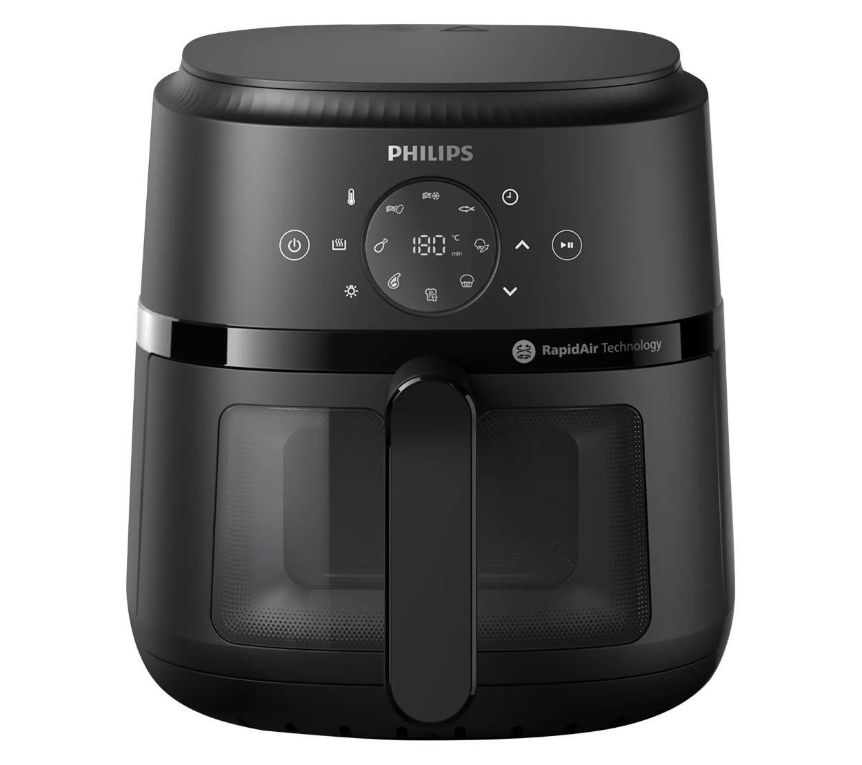 Особливості:Неслизька основа, Можна мити в посудомийній машині, Антипригарне покриття чаші, Підтримання тепла, Знімна кришка, Функція автозбереження тепла, Оглядове вікно, Автоматичне вимкнення, Встановлення часу приготування, Регулятор часу, Перемикач "увімк./вимк.", технологія Rapid Air, До 90% менше доданого жиру/олії для приготування, Застосунок HomeID з рецептами, Швидке та легке чищення, Звуковий сигнал після завершення роботи, Вбудований блок для зберігання шнура, Ручки, що не нагріваються, Термоізольовані зовнішні стінки, Внутрішнє покриття без вмісту бісфенолу A