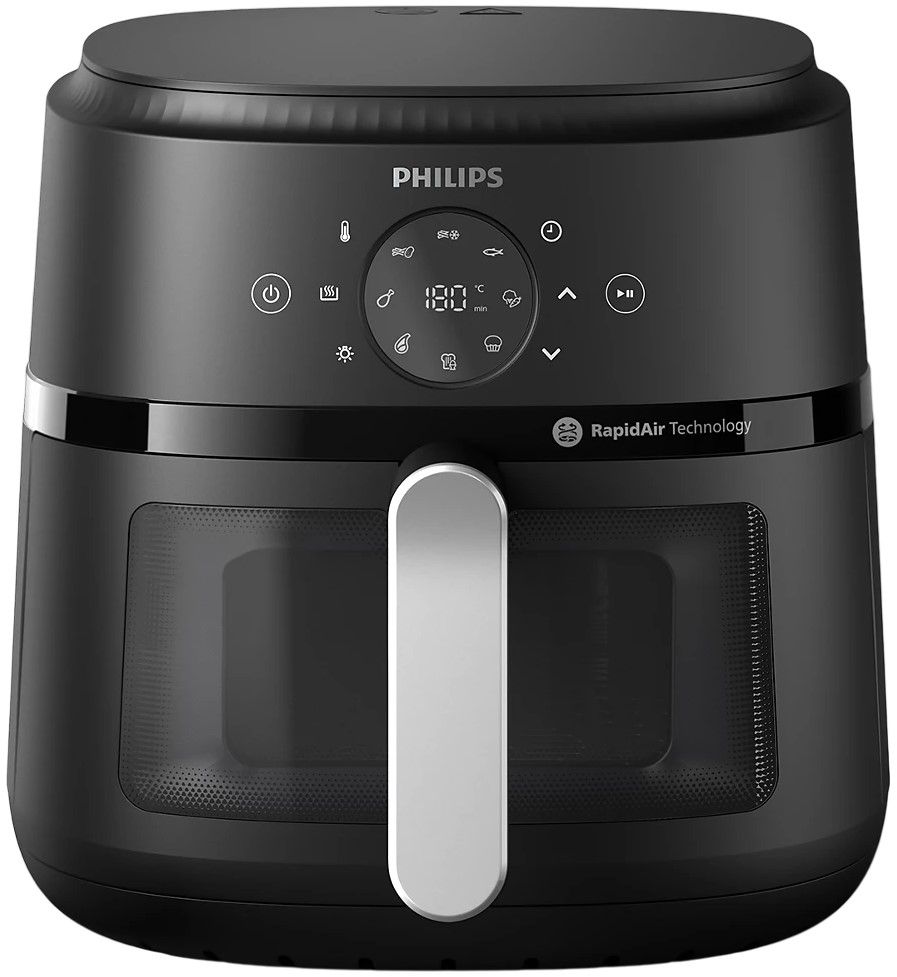 Особливості:Неслизька основа, Можна мити в посудомийній машині, Антипригарне покриття чаші, Підтримання тепла, Знімна кришка, Функція автозбереження тепла, Оглядове вікно, Автоматичне вимкнення, Встановлення часу приготування, Регулятор часу, Перемикач "увімк./вимк.", технологія Rapid Air, До 90% менше доданого жиру/олії для приготування, Застосунок HomeID з рецептами, Швидке та легке чищення, Звуковий сигнал після завершення роботи, Вбудований блок для зберігання шнура, Ручки, що не нагріваються, Термоізольовані зовнішні стінки, Внутрішнє покриття без вмісту бісфенолу A
