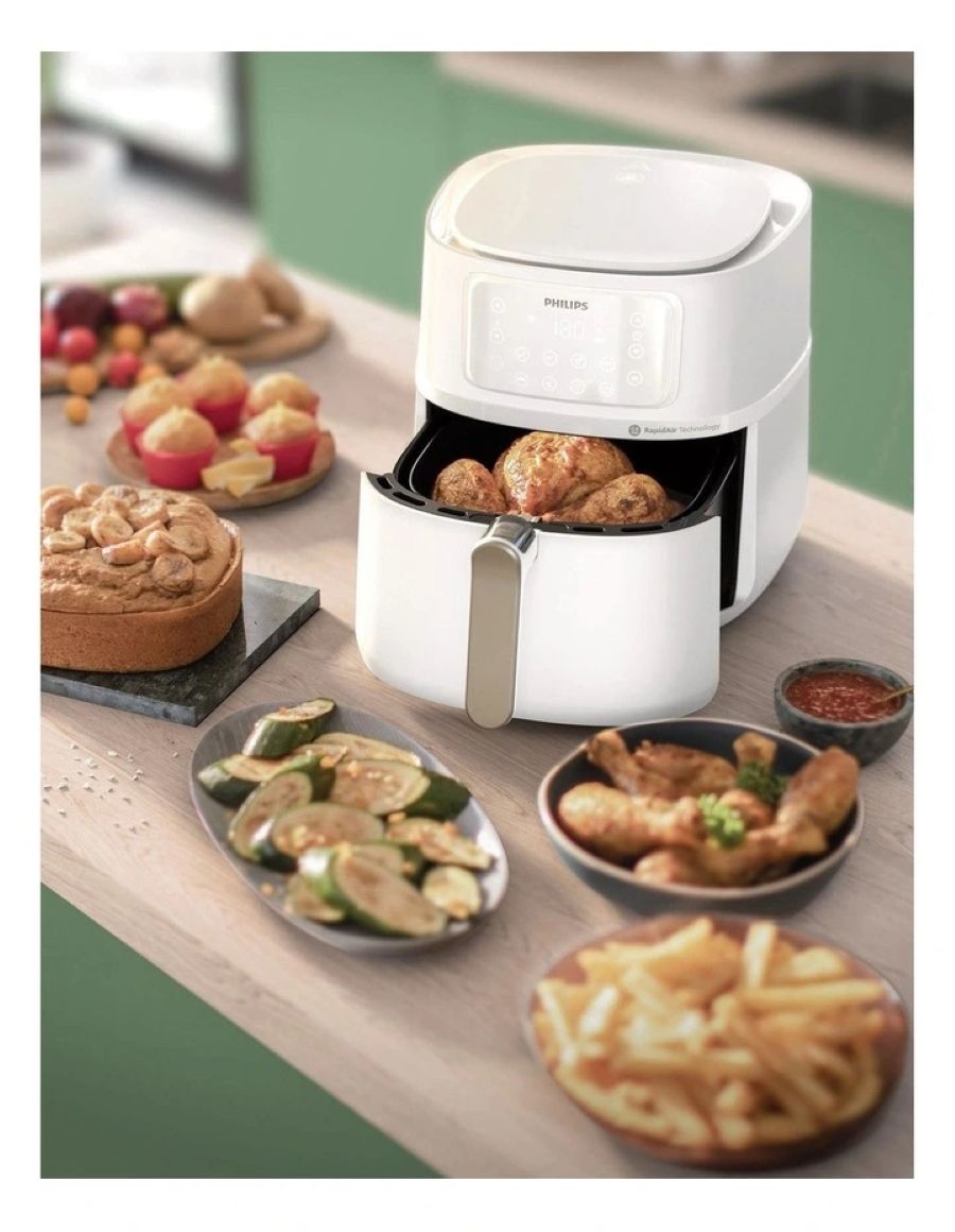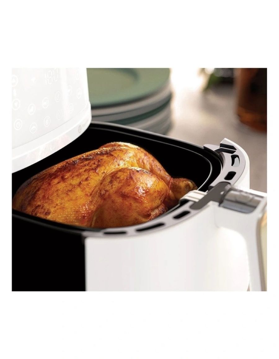 Особливості:Антипригарне покриття чаші, Підтримання тепла, Знімна кришка, Встановлення часу приготування, Регулятор часу, технологія Rapid Air, Застосунок HomeID з рецептами, Звуковий сигнал після завершення роботи, Внутрішнє покриття без вмісту бісфенолу A, Автоменю, Ємність XXL, З’єднання Wi-Fi, Автовимкнення після завершення процесу приготування, Кошик можна мити в посудомийній машині, Кошик QuickClean