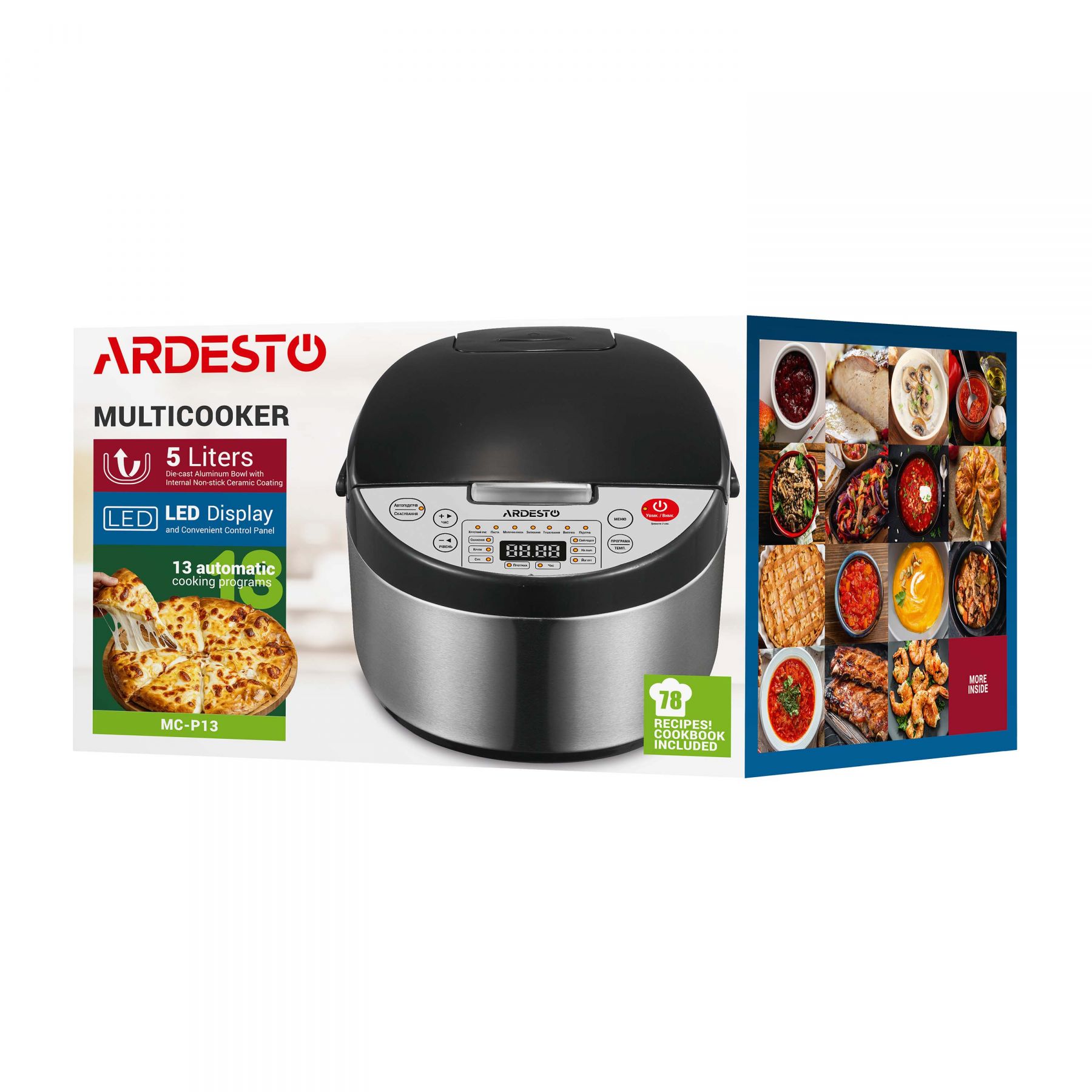 Мультиварка Ardesto, 860Вт, чаша-5л, електронне керув., книга рецептів, метал/пластик, сріблясто-чорний