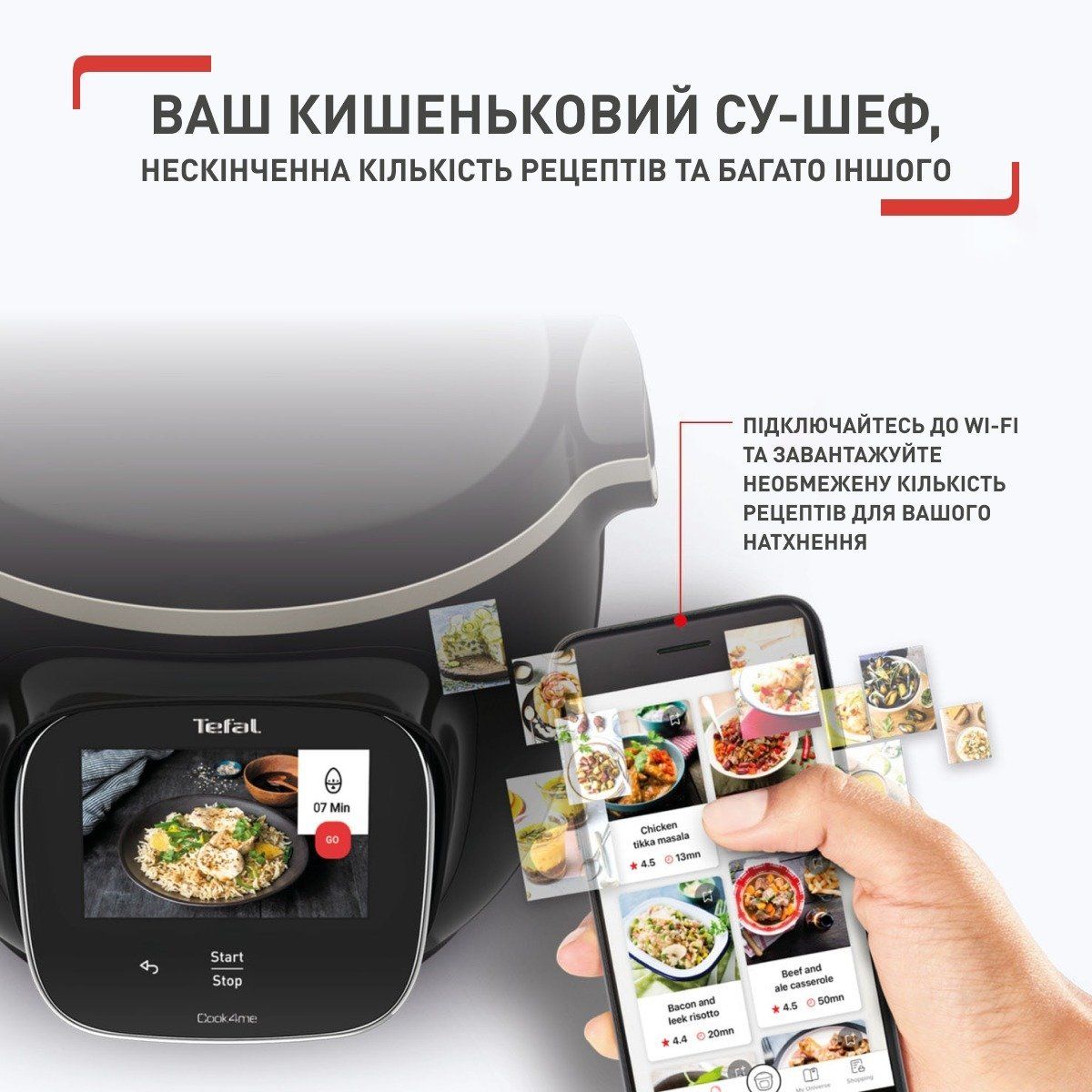 Готуйте улюблені страви на 80% швидше ніж зазвичай. Додавайте рецепти зі свого смартфона в меню. Обсмажує, тушкує, запікає чи навіть готує на пару! Дозволяє готувати страви на всю родину і гостей.