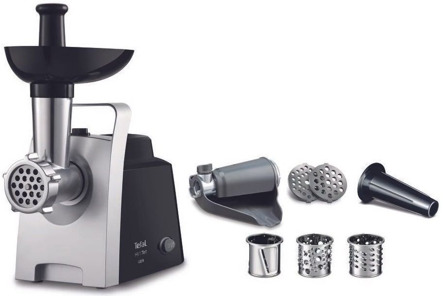 М'ясорубка Tefal HV1 7in1, 1400Вт, 1.7кг/хв, 2 решітки, насадка для ковбас, томатів, 3 терки, пластик, чорний