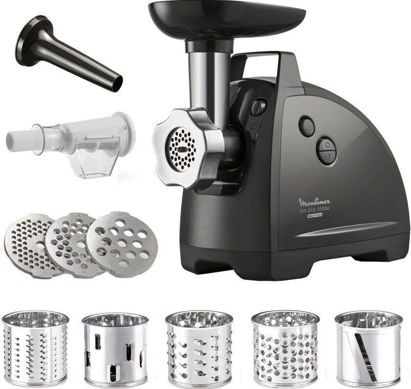 М'ясорубка Tefal HVB Plus, 2000Вт, 2.6кг/хв, 3 решітки, насадка для ковбас, кеббе, томатів, 5 терок, пластик/метал, чорний