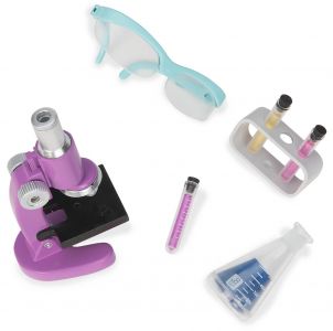 Комплектація:окуляри, 3 пробірки, 1 функціонуючий мікроскоп, 1 лабораторна колба, 1 штатив для пробірок