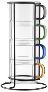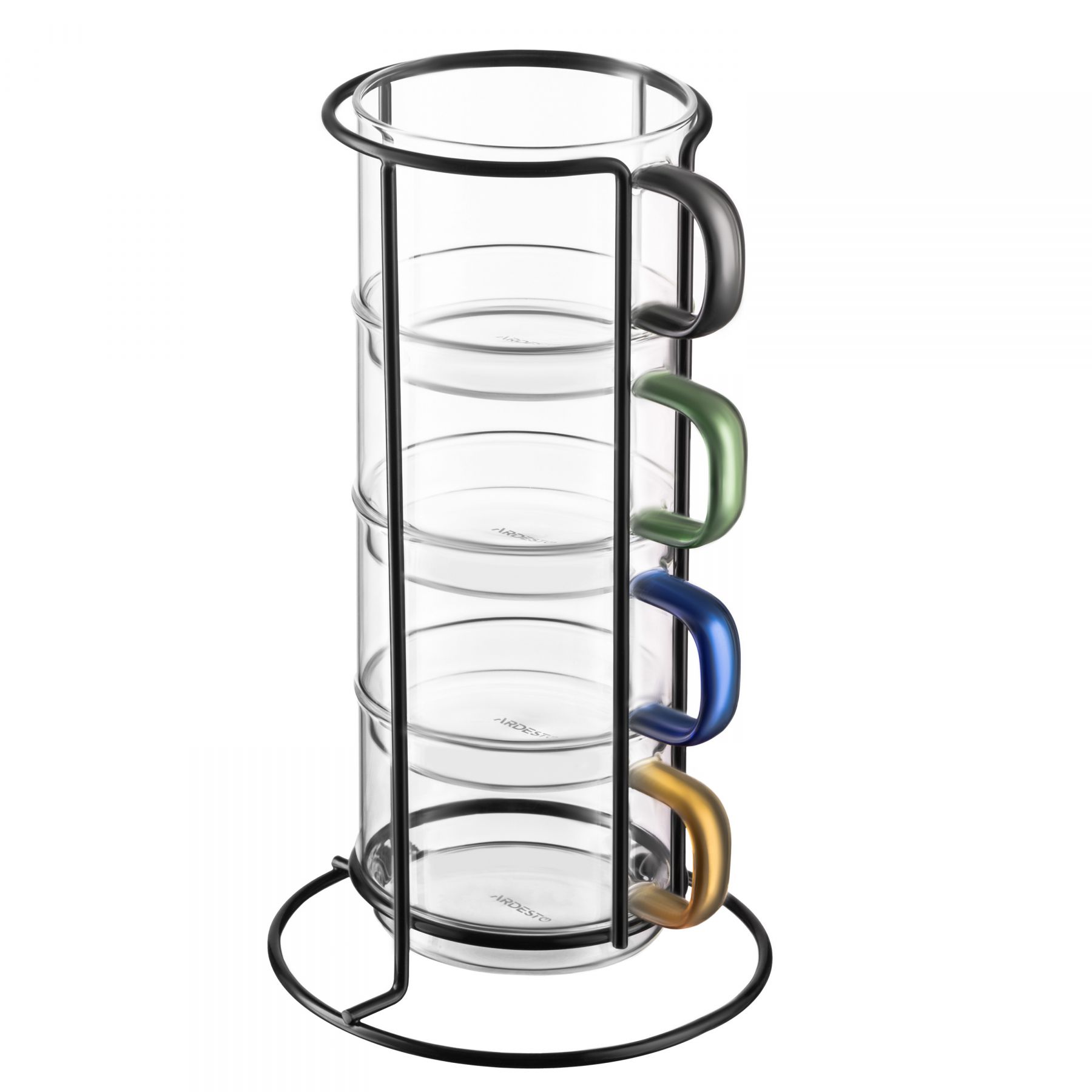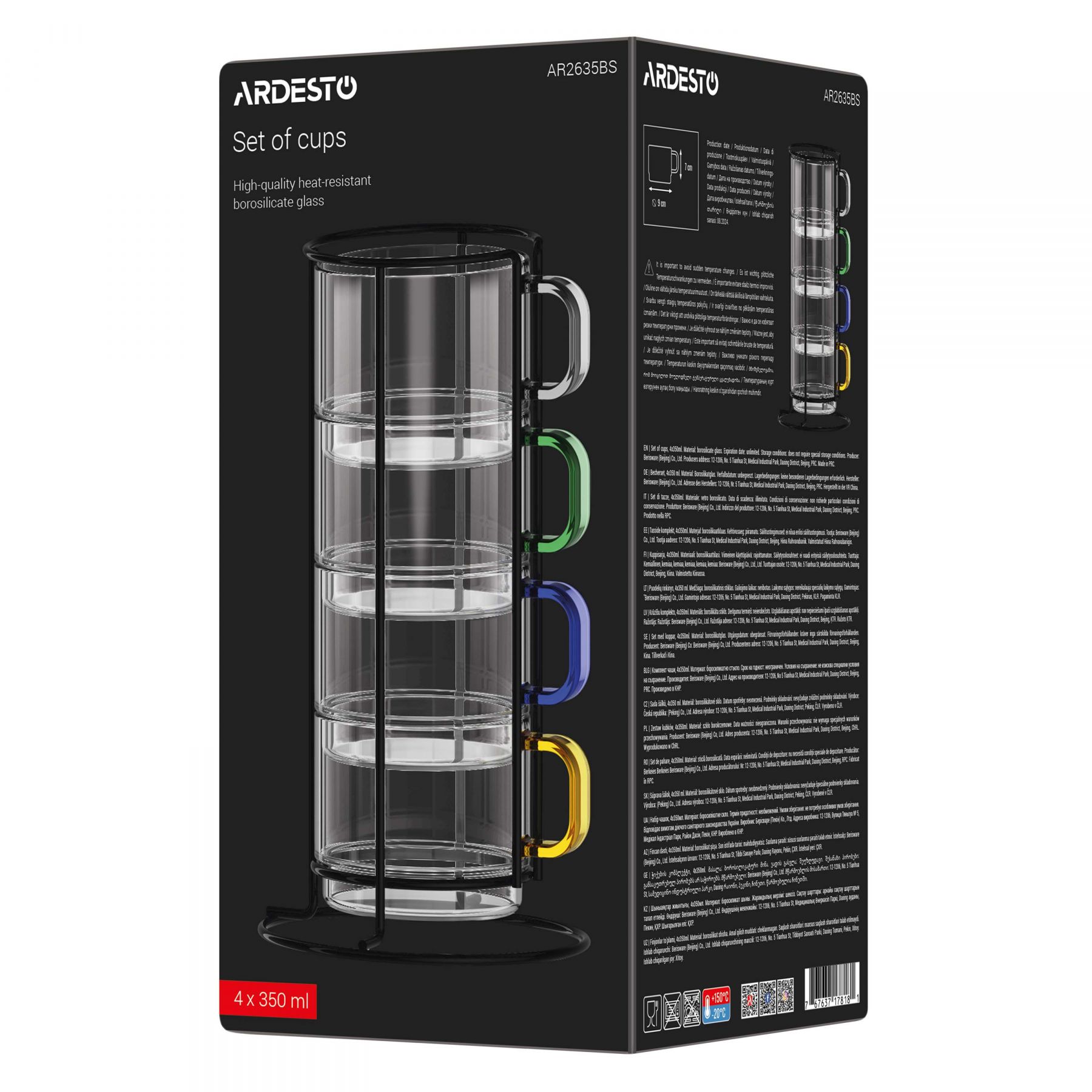 Набір чашок з підставкою Ardesto 350мл, 4шт, боросилікатне скло, прозорий