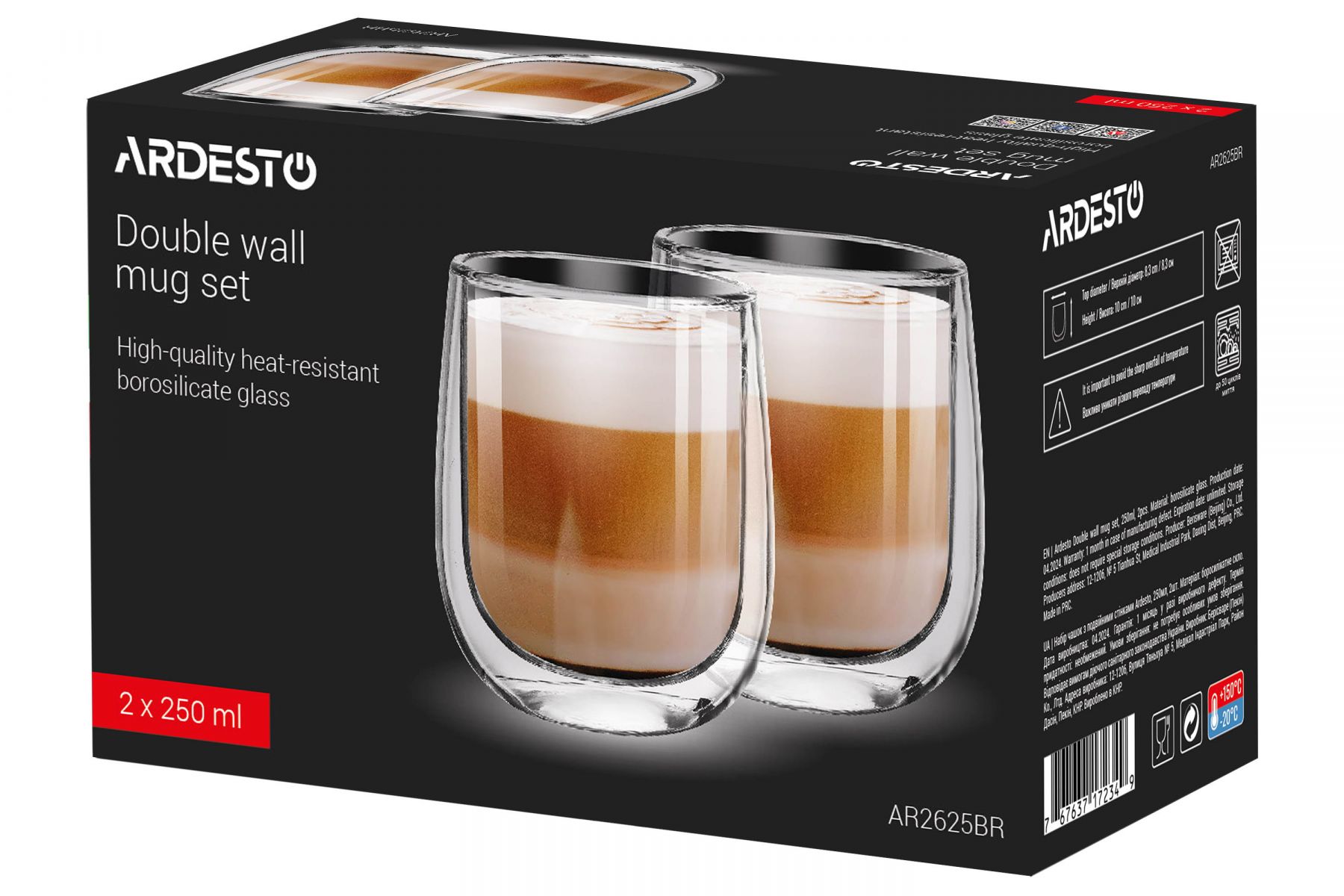 Набір чашок з подвійними стінками Ardesto, 250мл, 2шт, боросилікатне скло, прозорий