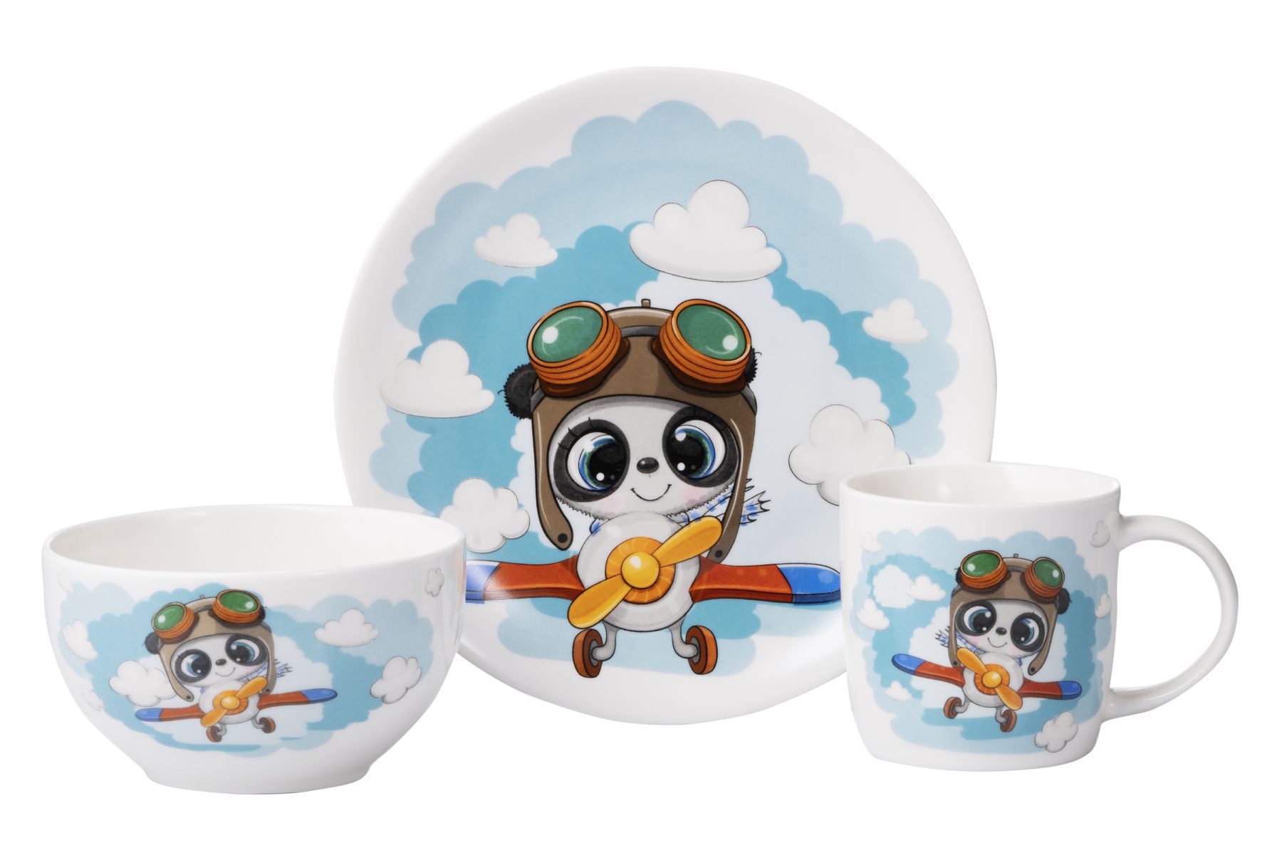 Набір дитячого посуду Ardesto Panda pilot, 3 предмети, порцеляна