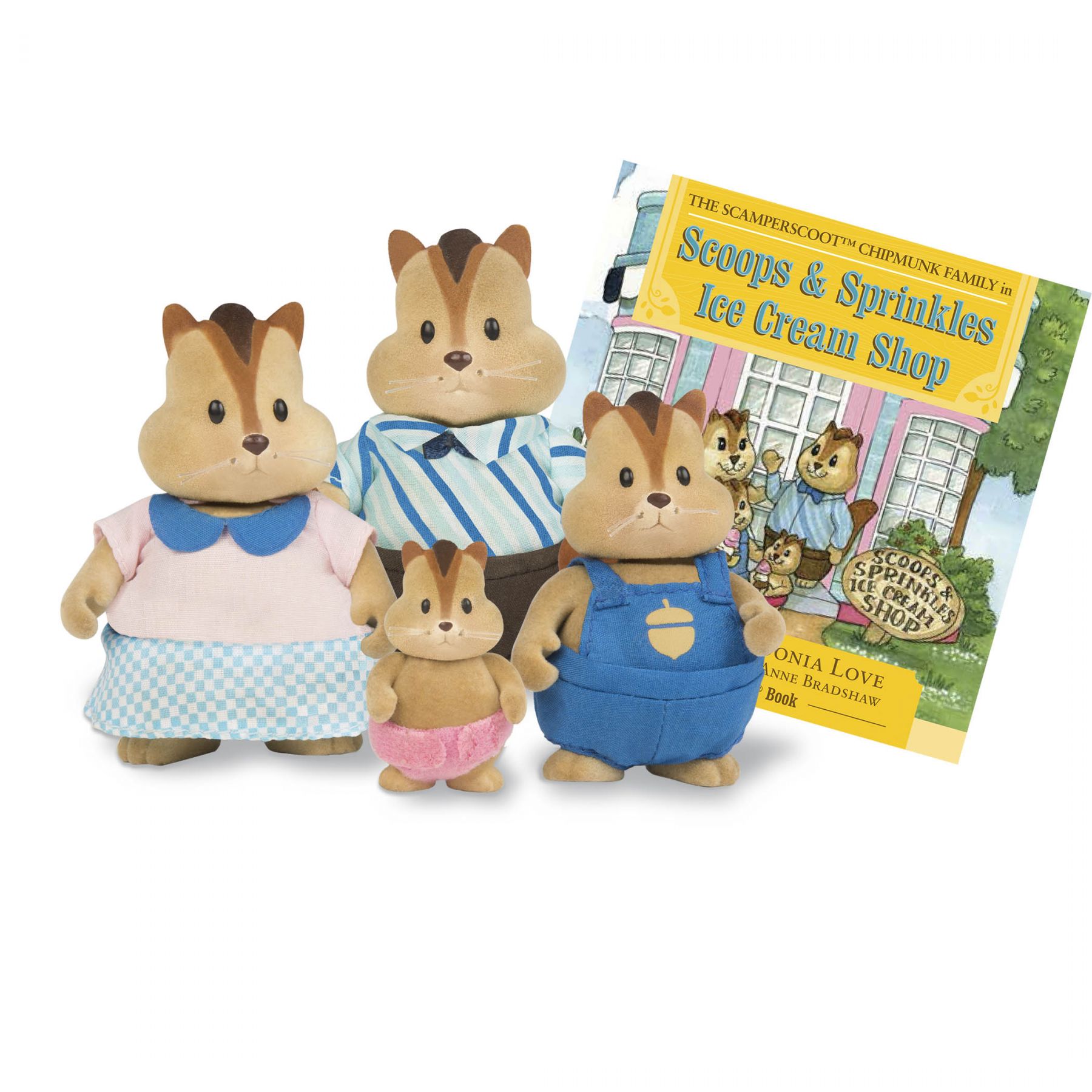 Набір фігурок Li`l Woodzeez Сім'я Бурундуків 4од, книжка EN