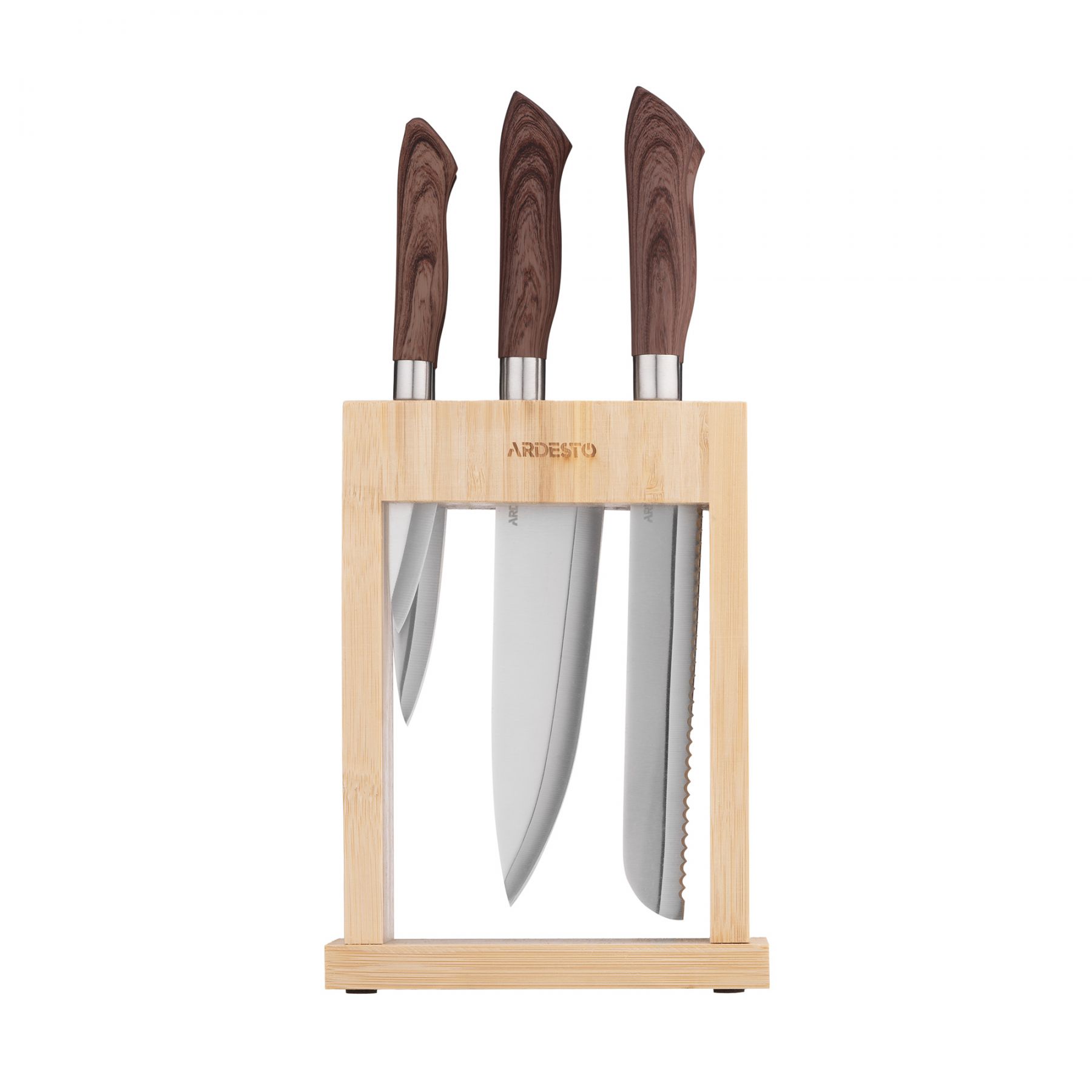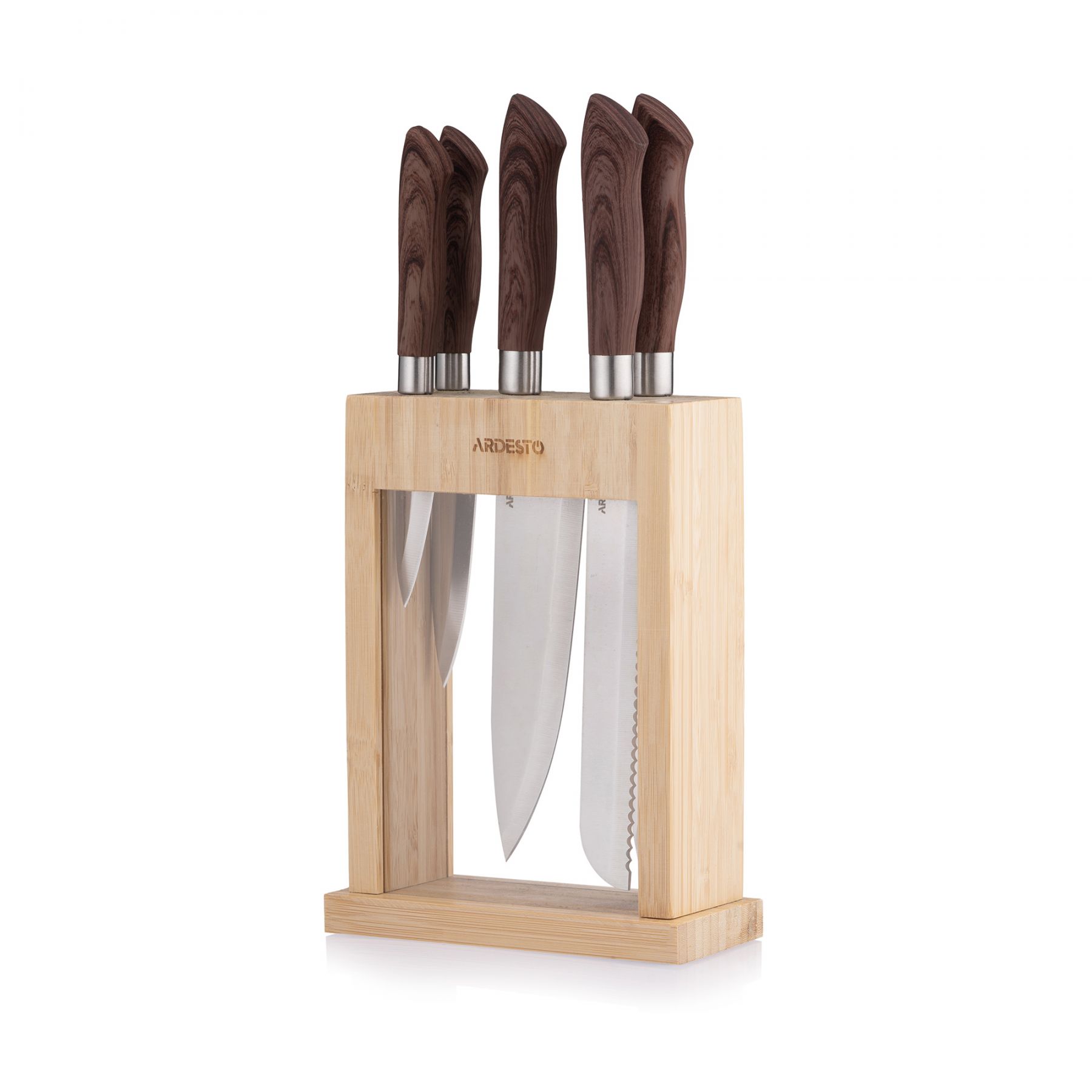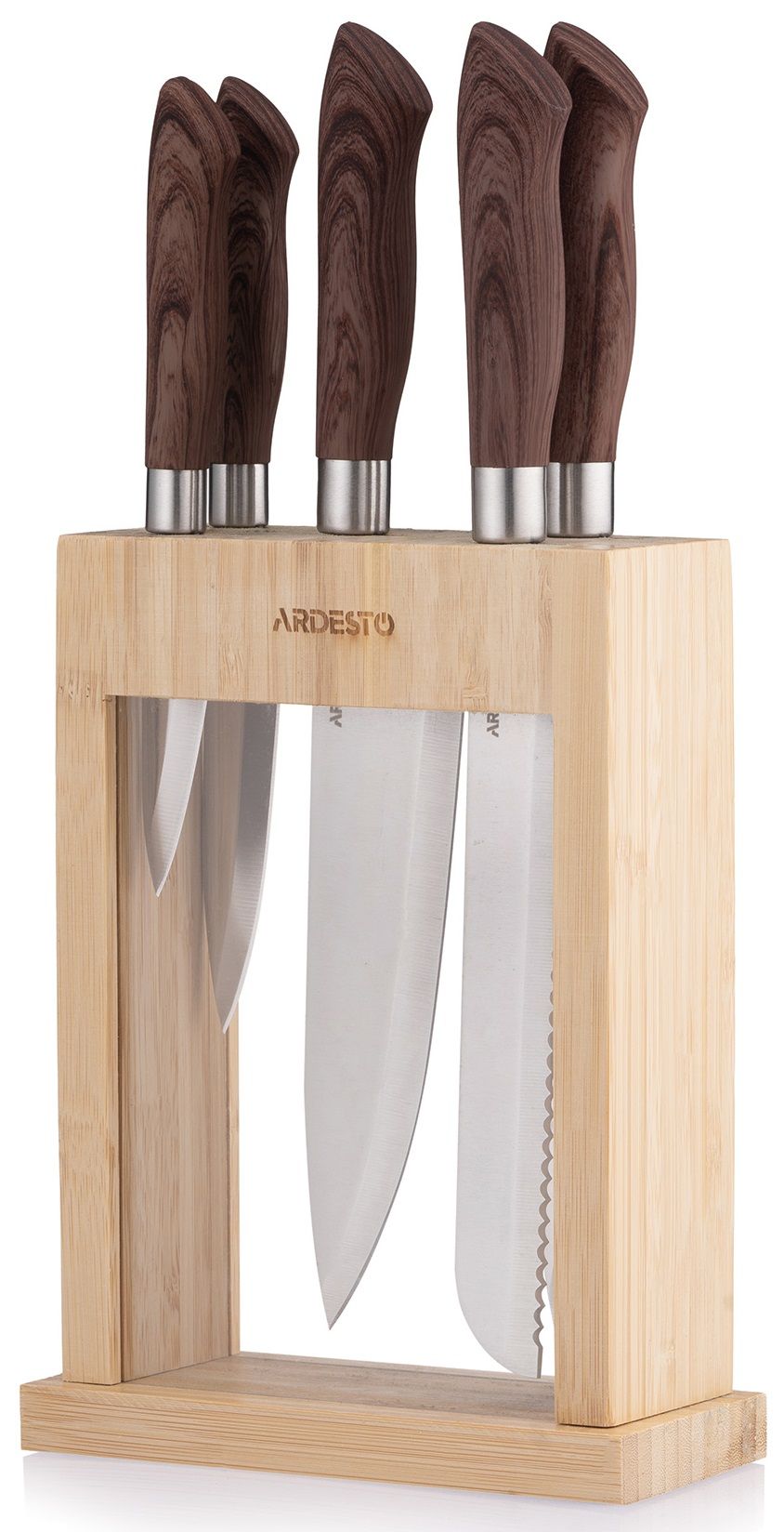 Набір ножів з блоком Ardesto Midori, 6 предметів, нержавіюча сталь, пластик, бамбук, коричневий