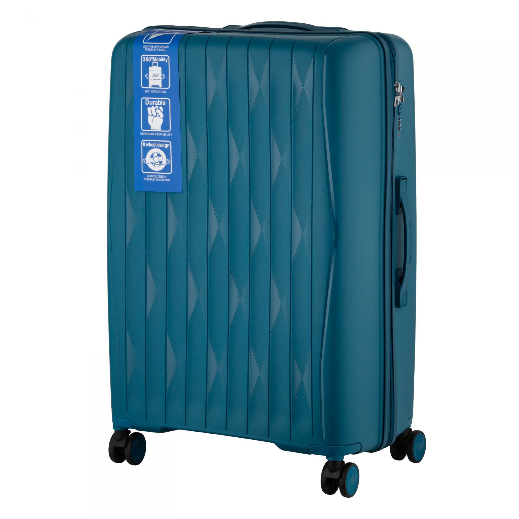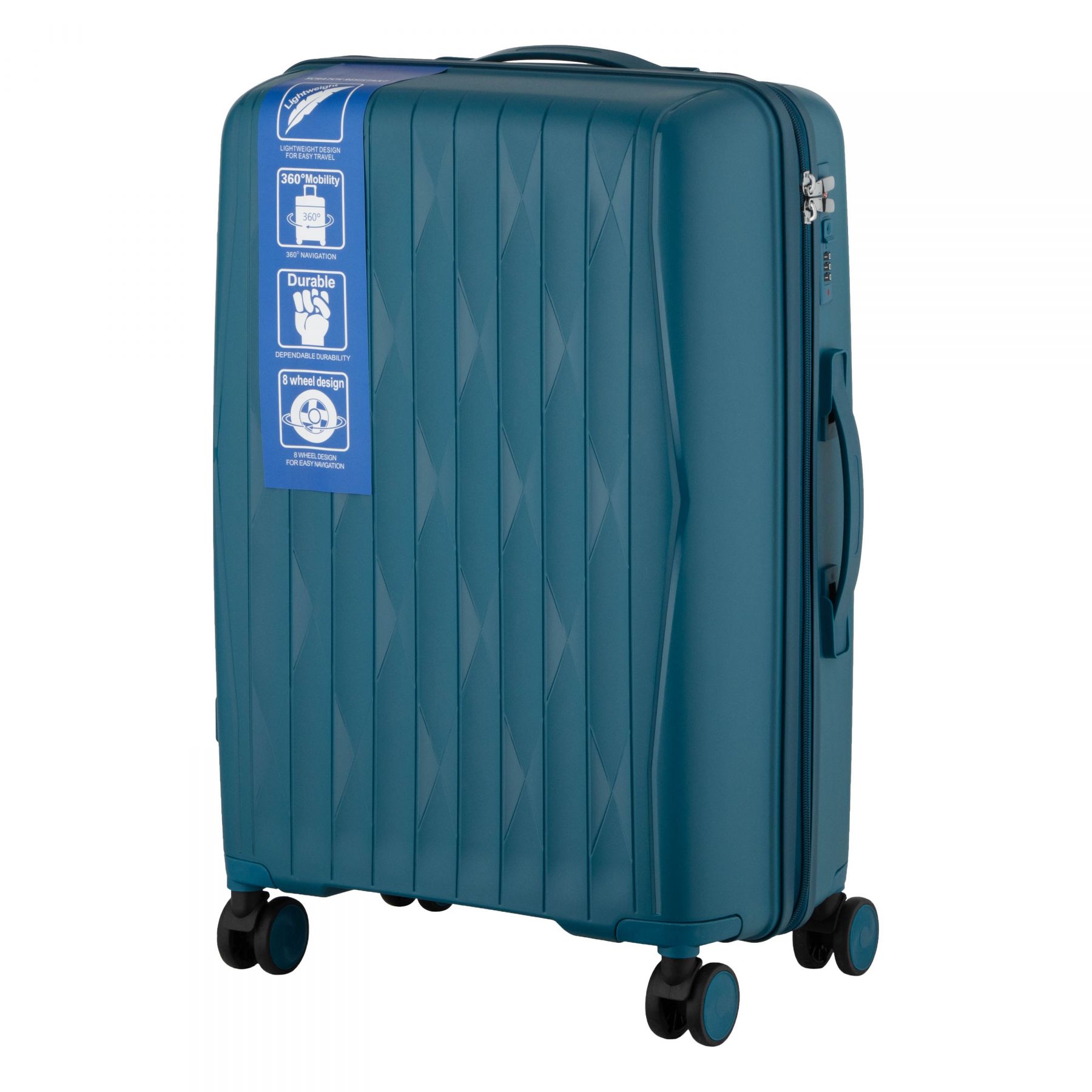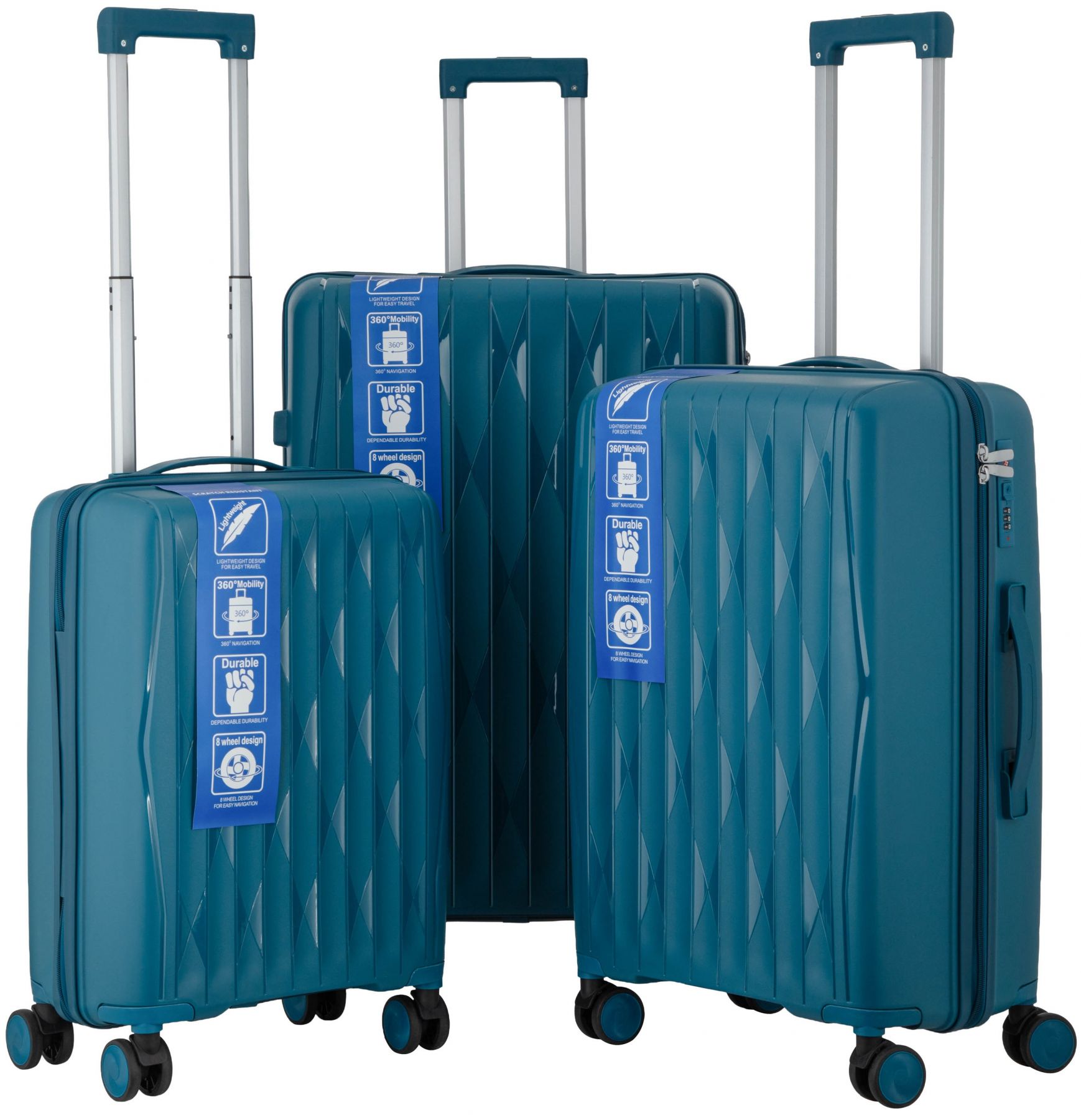 Набір валіз 2E, M7979, поліпропілен, (L+M+S), блискавка anti theft, 4 колеса, кодовий замок, блакитний