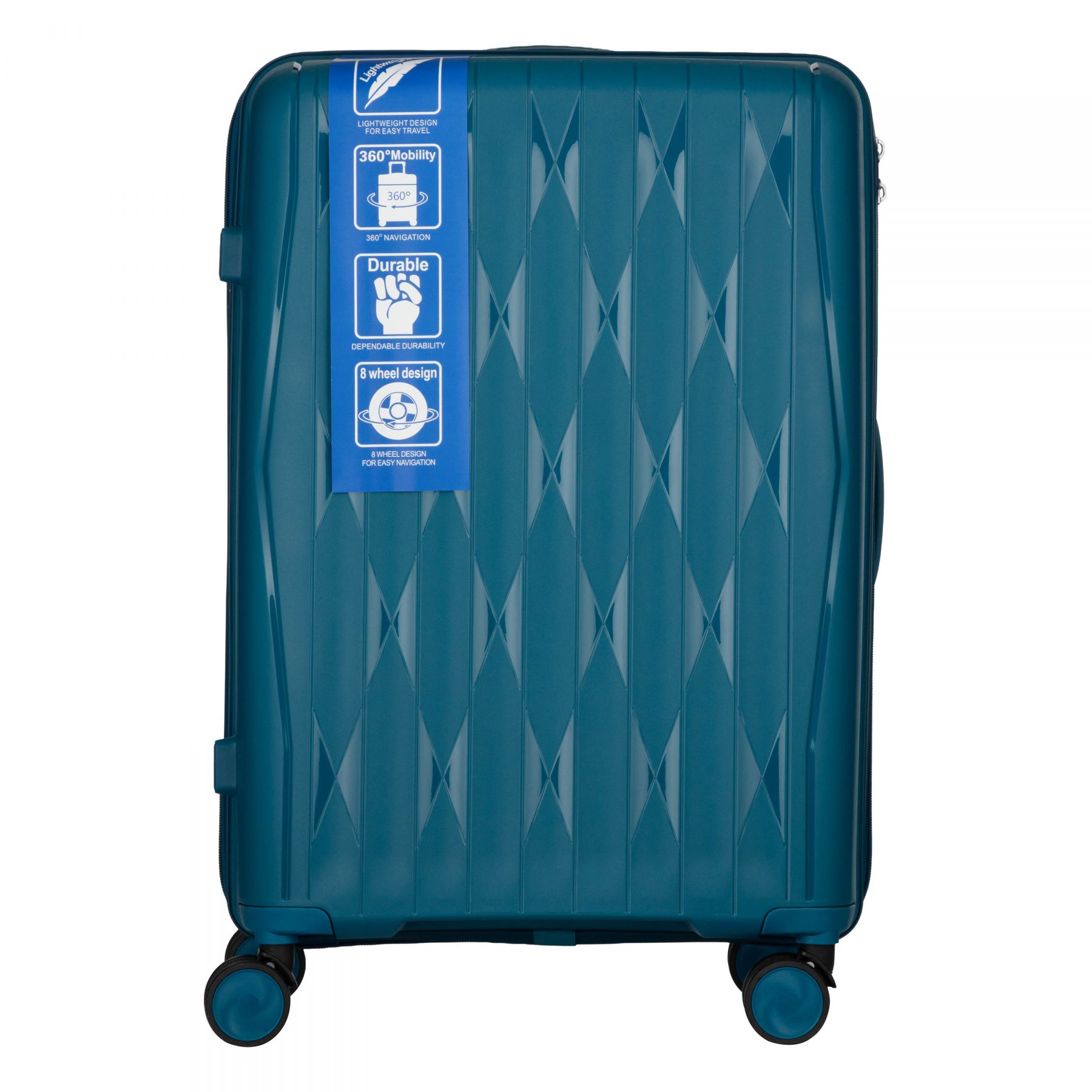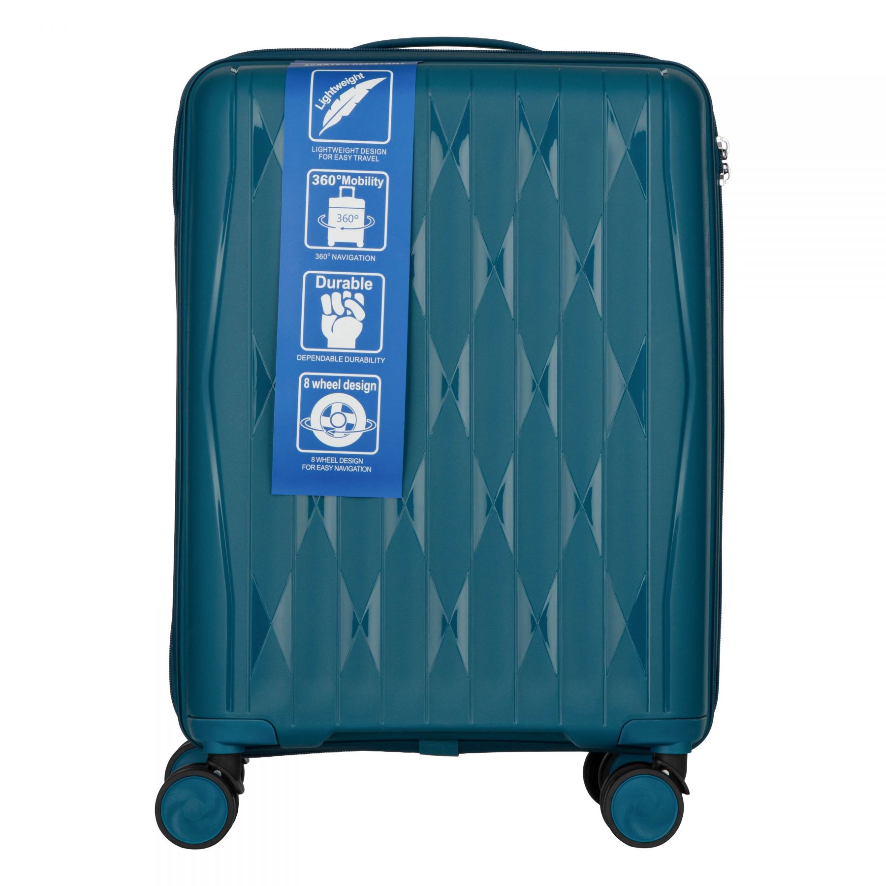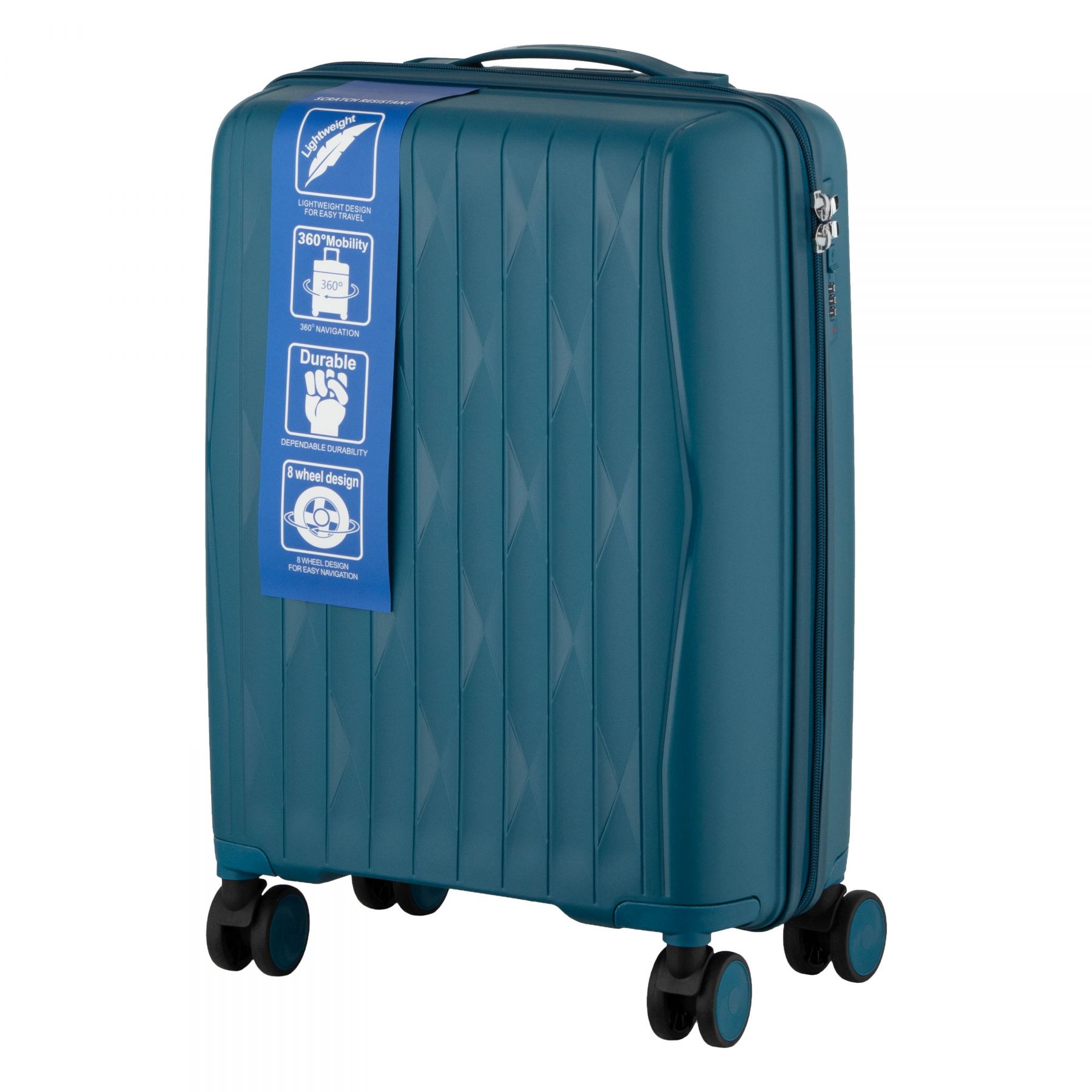 Особливості:передбачено розділювачі та регульовані пакувальні паски всередині, подвійні колеса з обертанням на 360 градусів, захисна блискавка (anti-theft), тканинний розділювач на блискавці
