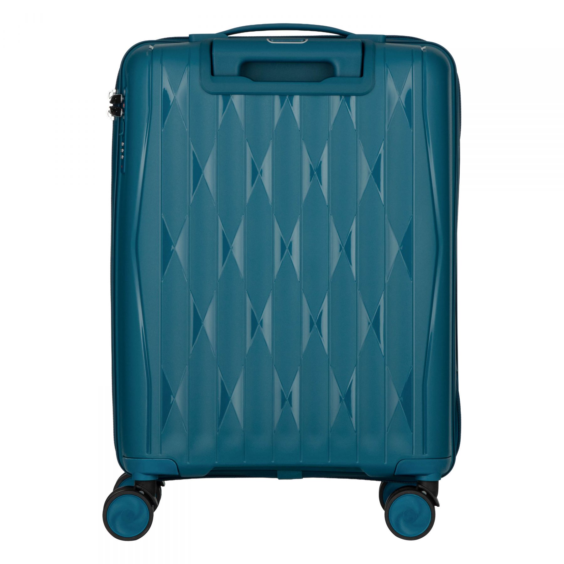 Внутрішній простір організовано з урахуванням зручного пакування: тканинний розділювач на блискавці, регульовані фіксувальні ремені та підкладка. Конструкцією передбачено телескопічне алюмінієве руків’я (регульоване за висотою), чотири подвійні колеса з обертанням на 360° для маневреності, а також вбудований кодовий замок і блискавку anti-theft для додаткового захисту вмісту.