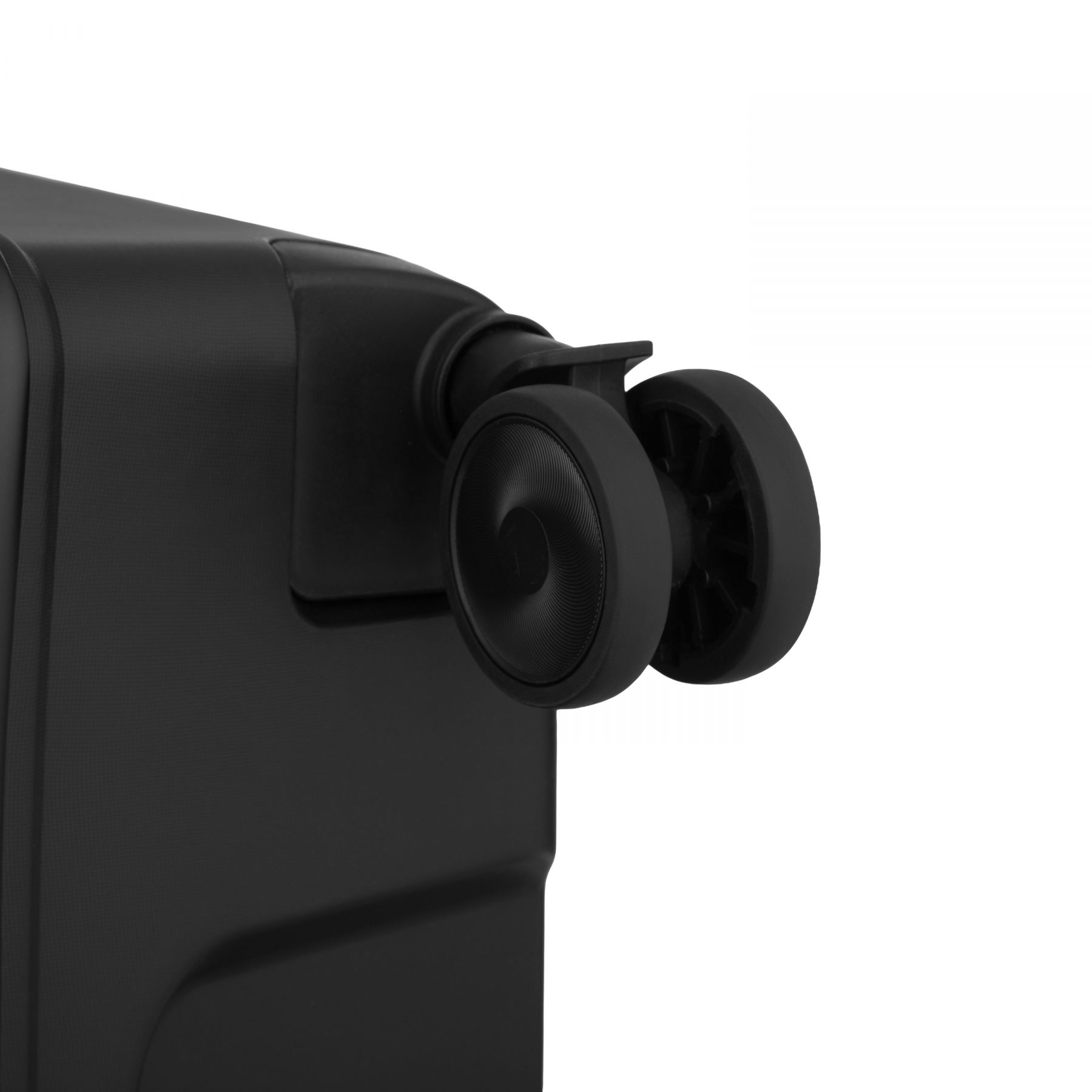 Внутрішній простір організовано з урахуванням зручного пакування: тканинний розділювач на блискавці, регульовані фіксувальні ремені та підкладка. Конструкцією передбачено телескопічне алюмінієве руків’я (регульоване за висотою), чотири подвійні колеса з обертанням на 360° для маневреності, а також вбудований кодовий замок і блискавку anti-theft для додаткового захисту вмісту.