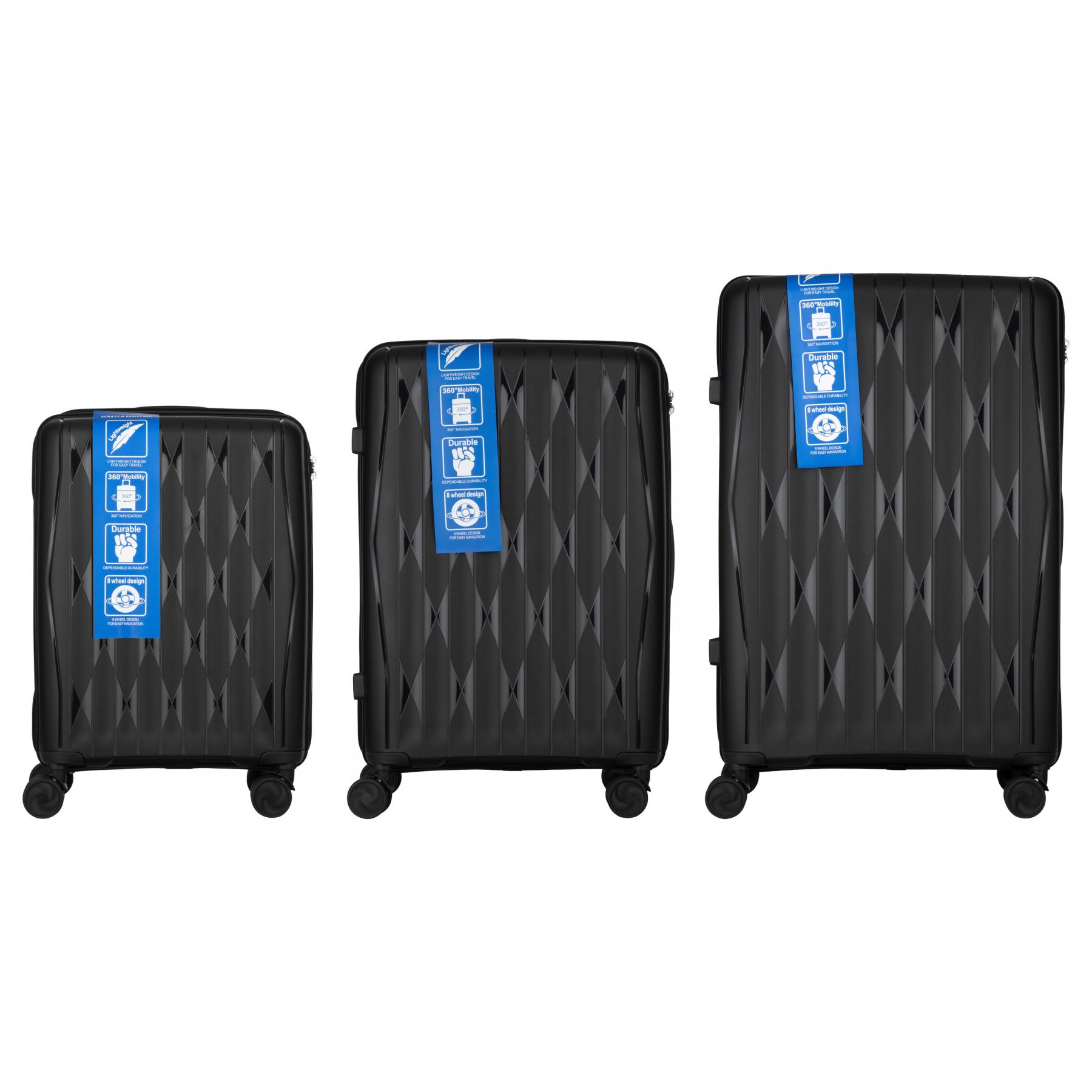 Набір валіз 2E, M7979, поліпропілен, (L+M+S), блискавка anti theft, 4 колеса, кодовий замок, чорний