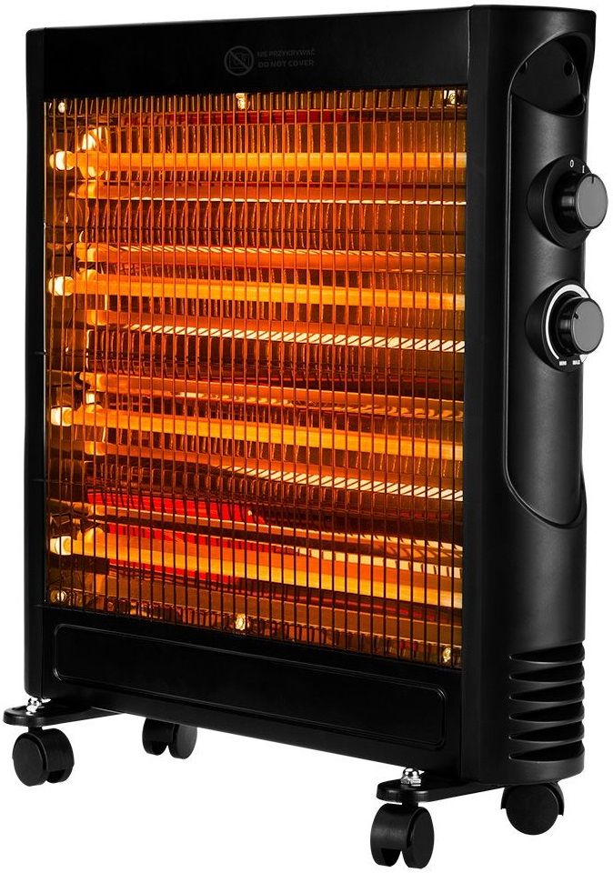 Кварцовий інфрачервоний обігрівач 600/1200 Вт 90-111 від NEO оснащений нагрівальним елементом - 4 кварцовими трубками, що гарантує тиху роботу без нагрівання повітря. Він має практичний термостат і захисний вимикач з можливістю повороту на 360 градусів. Підтримує дві програми з потужністю 600 і 1200 Вт.