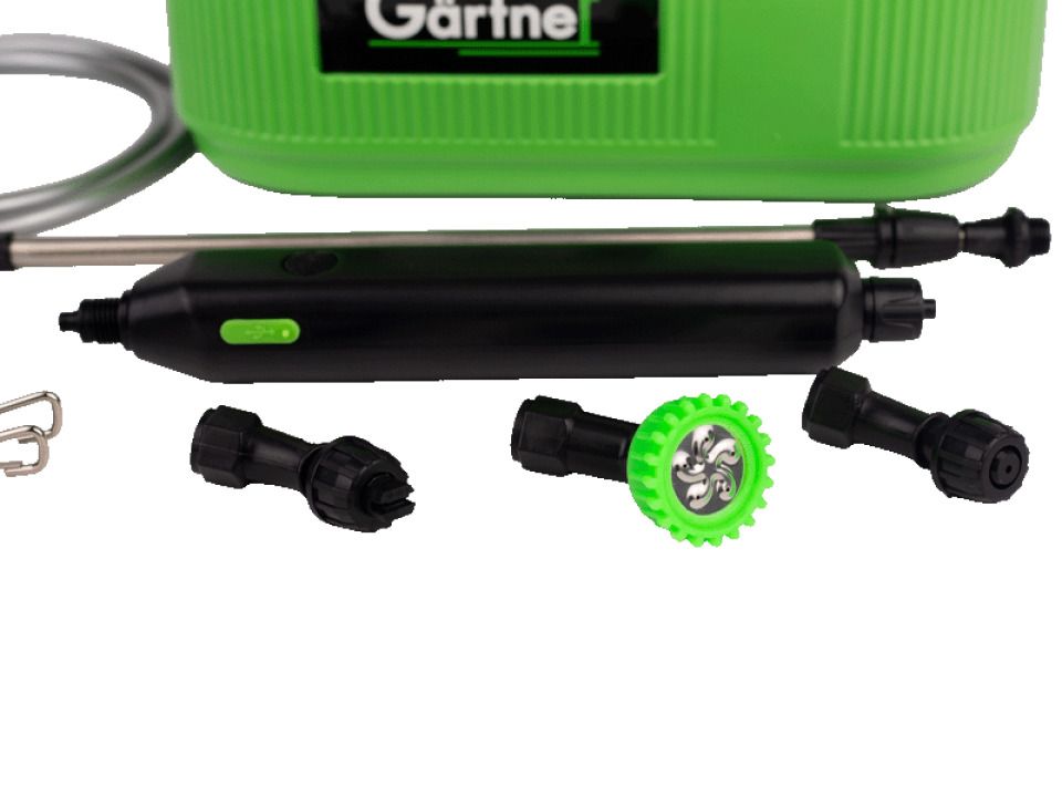 Акумуляторний обприскувач GARTNER об’ємом 5 л призначений для догляду за рослинами на присадибних ділянках і в теплицях. Автоматичне створення тиску забезпечує стабільне розпилення без ручного накачування. Вбудований акумулятор 3,7 В із ємністю 2,5 А·год підтримує тривалу автономну роботу. Плечова лямка спрощує перенесення під час обробки великих площ.