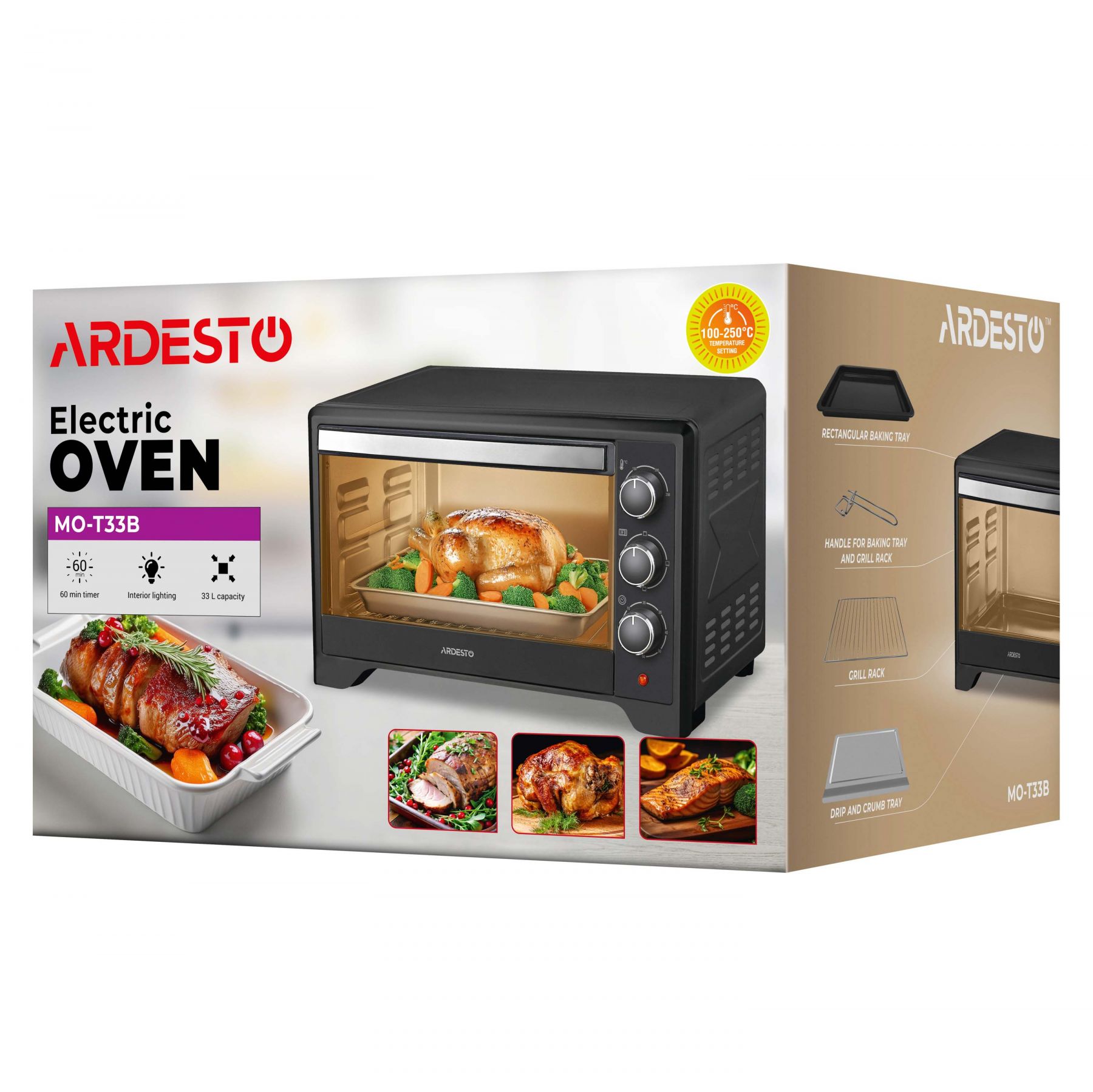 Електрична піч ARDESTO – це втілення компактності та функціональності. Об’єм 33 л дає змогу готувати не лише повсякденні страви, а й експериментувати з випічкою і запіканням. Лаконічний чорний корпус органічно пасує до різних кухонних інтер’єрів, додаючи стильного акценту.