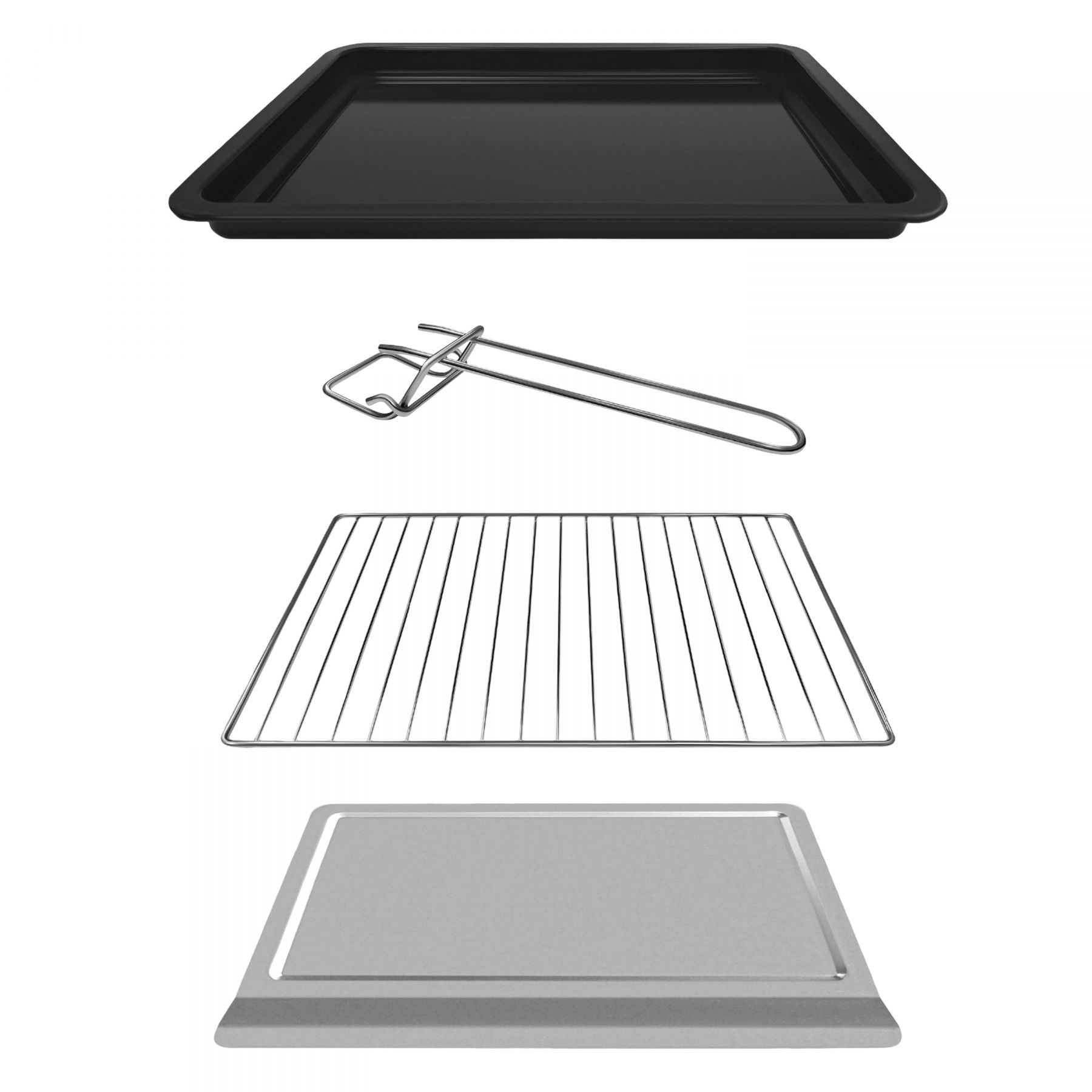 Комплектація:прямокутне деко, решітка для гриля, піддон для крихт, ручка для безпечного вилучення листа/решітки