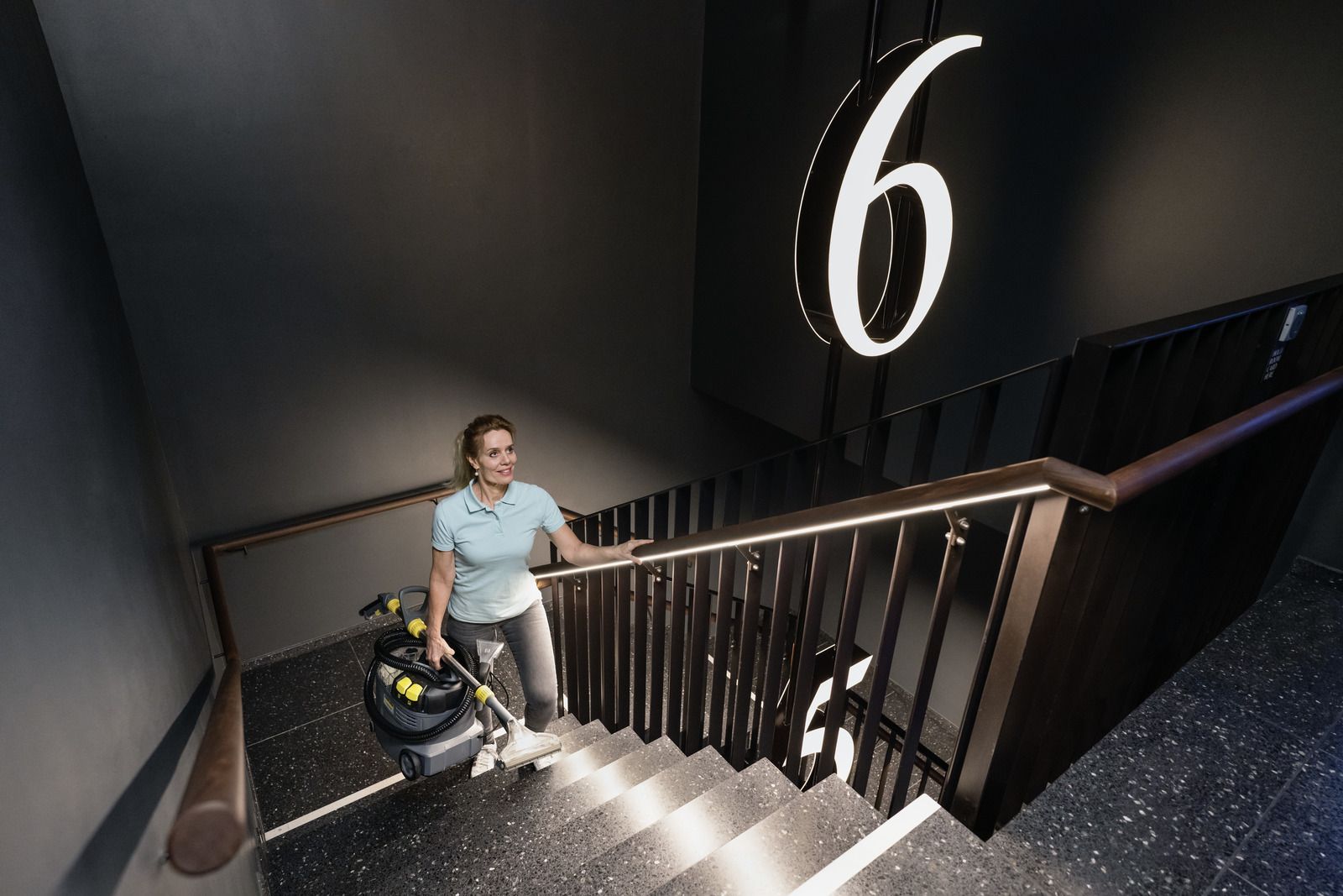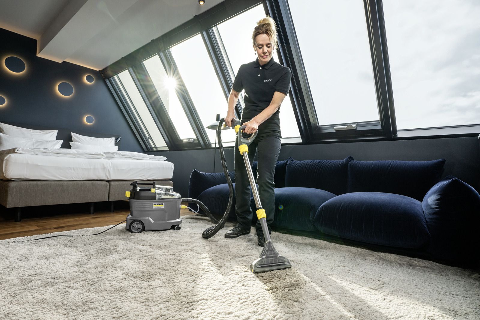 Професійний миючий пилосос Karcher Puzzi 8/1 Adv ефективно очищає килими, меблеву оббивку та інші текстильні поверхні завдяки глибокому розпиленню миючого розчину і швидкому збору вологи. Прозора кришка, насадки та оглядове вікно в рукоятці забезпечують контроль процесу. Легка вага, ергономічна ручка та великі кнопки роблять апарат зручним у використанні. Компактна й міцна конструкція гарантує тривалий термін служби, що особливо цінно для клінінгових компаній, готелів, ресторанів та сервісів з хімчистки автомобілів.