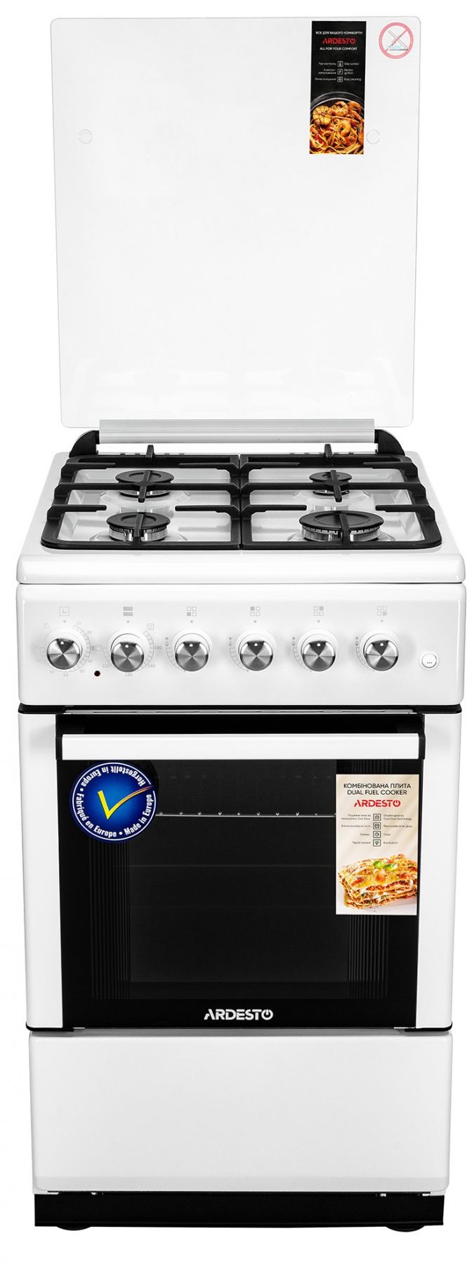 Плита ARDESTO комбі, 52л, 50x60см, чавун, підсвічування, форсунки LPG (підключення газового балона), білий