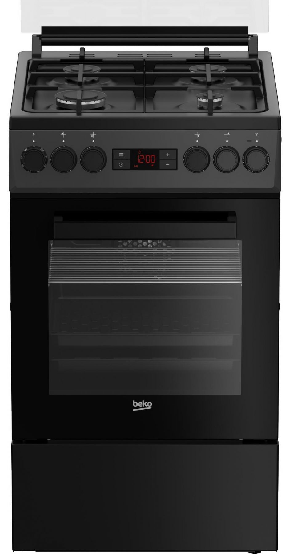 Плита Beko комбінована, 60л, 50x60см, дисплей, конвекція, чавун, чорний
