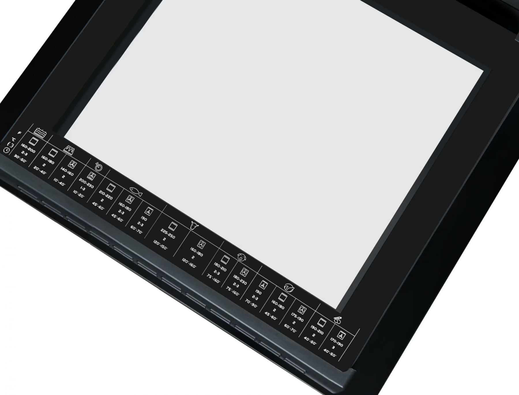 Особливості:зйомні дверцята духовки, висувна шухляда, індикатор залишкового тепла, максимальна температура зовнішнього скла дверцят духової шафи: 72 °C, час нагрівання до 180 °C: 9 хв, внутрішнє освітлення (галогенні лампи), 5 рівнів для випікання