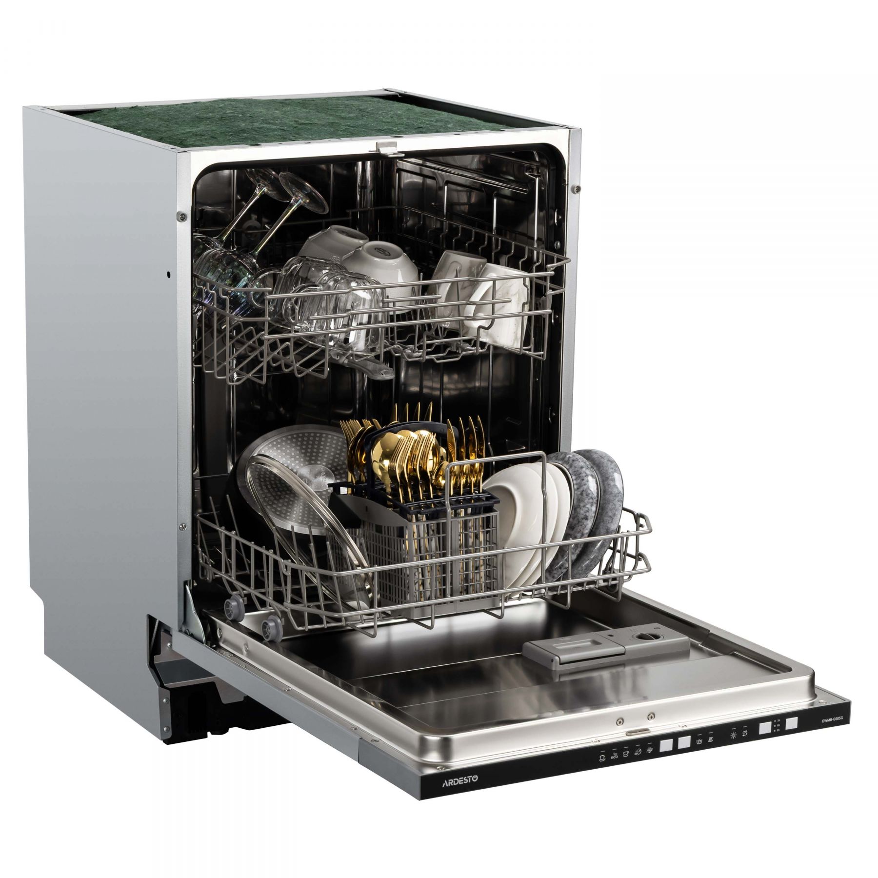 Вбудовувана посудомийна машина ARDESTO DWMB-G605G може одночасно очистити 12 комплектів посуду. Передбачено 5 програм для різних потреб – від інтенсивного очищення до економного режиму. Завдяки функції «Половинне завантаження» можна запускати будь-яку програму навіть із невеликою кількістю посуду, економлячи ресурси та час. Таймер відкладеного старту (3/6/9 год), світловий промінь на підлогу, система захисту від протікання та регульований верхній кошик роблять процес миття комфортним і безпечним, а результат – найліпшим.
