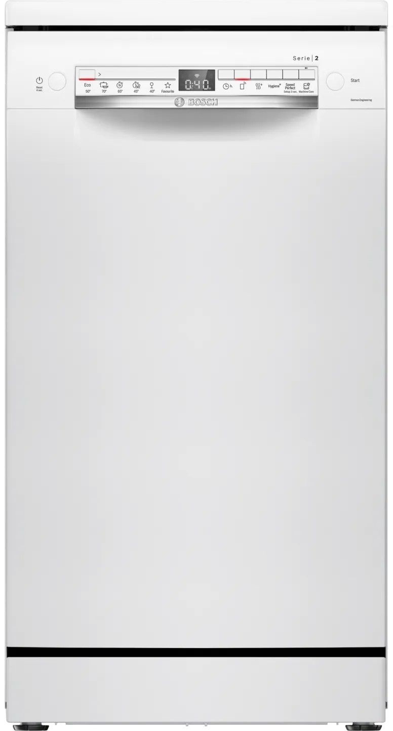 Bosch SPS2IKW55K — вузька посудомийна машина з підтримкою Wi-Fi та застосунку Home Connect, яка забезпечує ідеальну сушку навіть пластикового посуду, тишу в роботі та інтелектуальний вибір програм. Ідеальне рішення для компактних кухонь, що поєднує інновації Bosch із комфортом повсякденного використання. Завдяки сучасним функціям, таким як ExtraDry, Easy Start і SpeedPerfect, вона легко адаптується до ваших щоденних потреб.