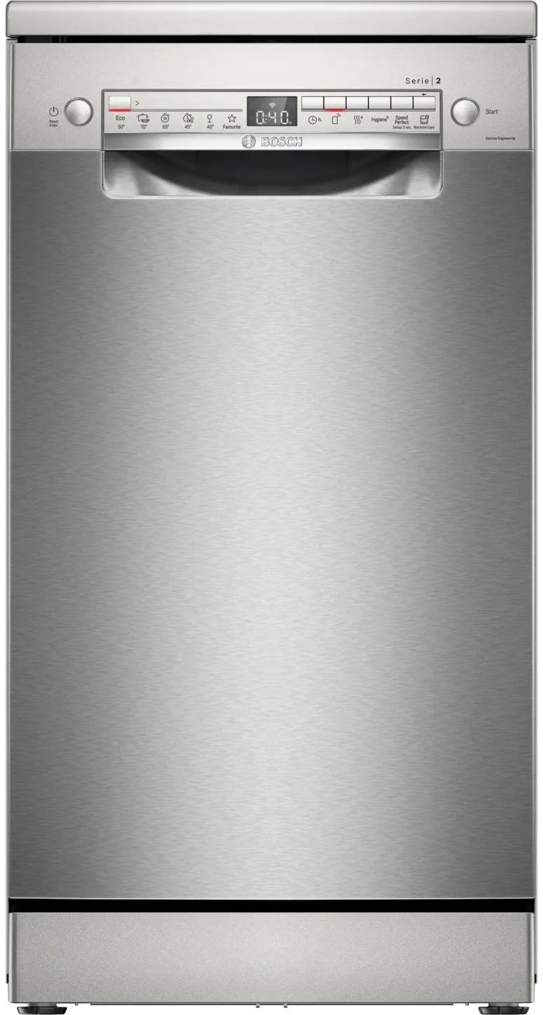 Bosch SPS2IKI55K — вузька посудомийна машина з підтримкою Wi-Fi та застосунку Home Connect, яка забезпечує ідеальну сушку навіть пластикового посуду, тишу в роботі та інтелектуальний вибір програм. Ідеальне рішення для компактних кухонь, що поєднує інновації Bosch із комфортом повсякденного використання. Завдяки сучасним функціям, таким як ExtraDry, Easy Start і SpeedPerfect, вона легко адаптується до ваших щоденних потреб.