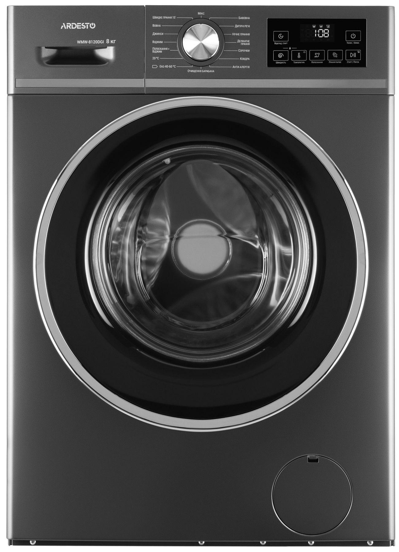 Пральна машина ARDESTO фронтальна, 8кг, 1200, А+++, 55см, дисплей, пара, інвертор, сірий
