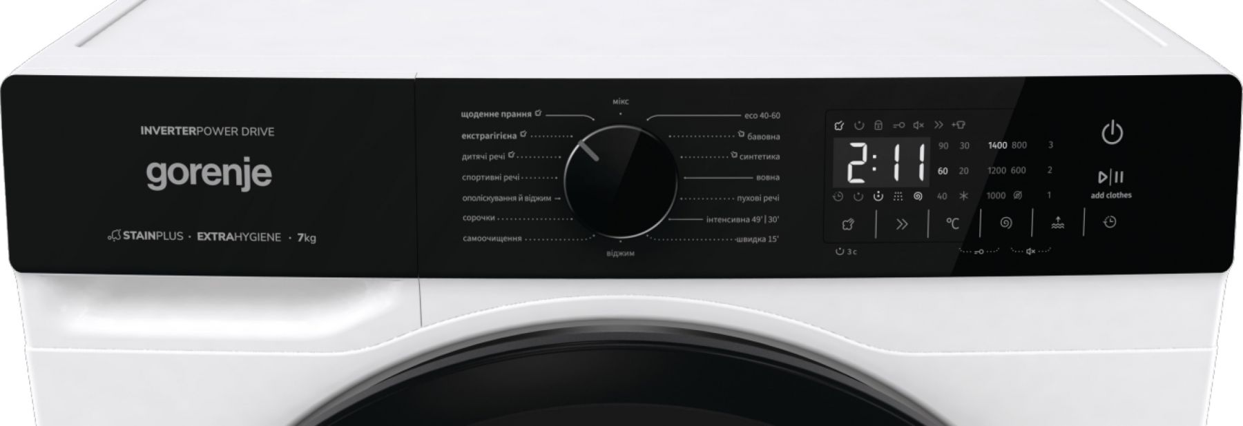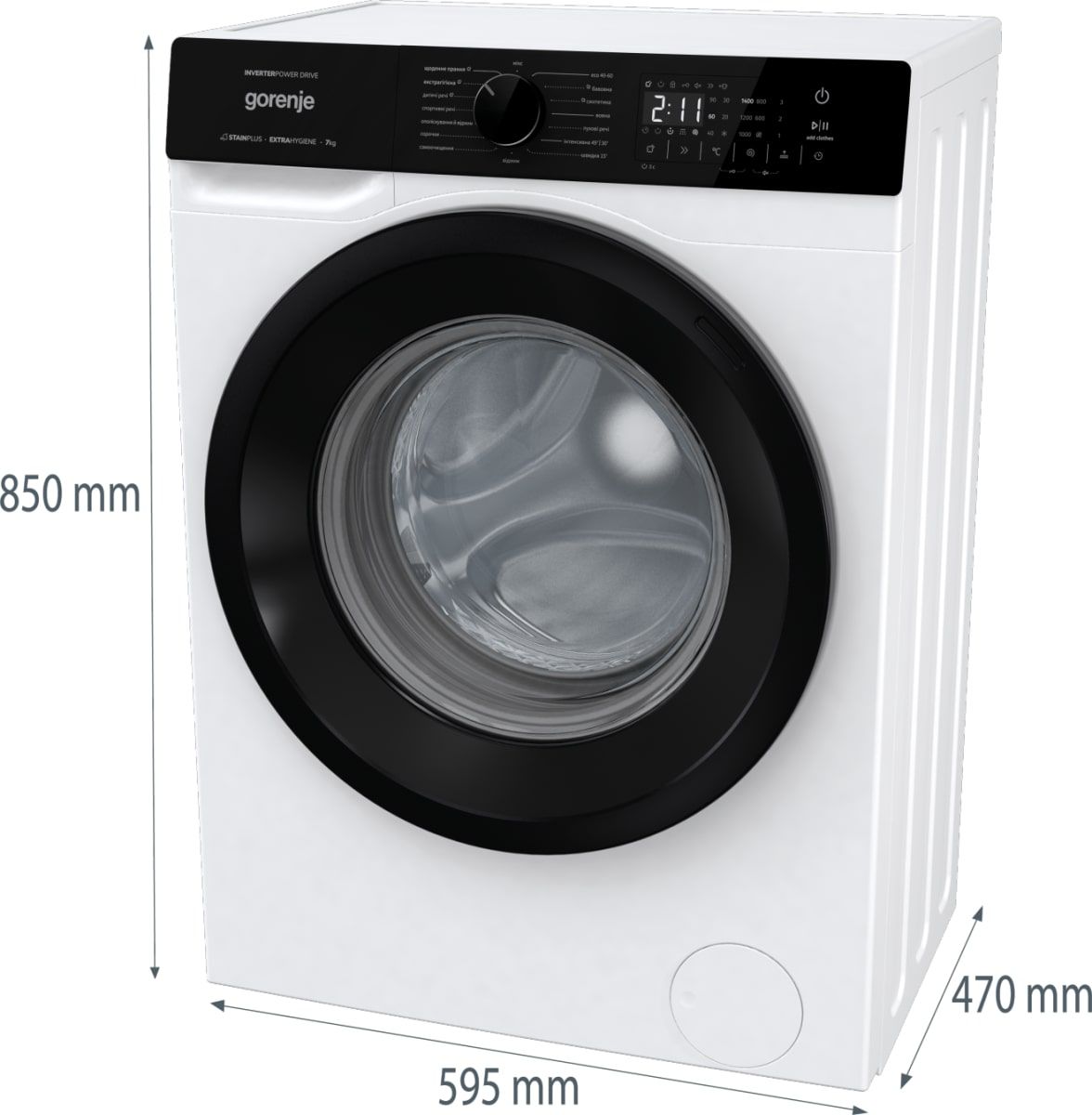 Пральна машина Gorenje фронтальна, 7кг, 1400, A+++, 47см, дисплей, пар, інвертор, білий