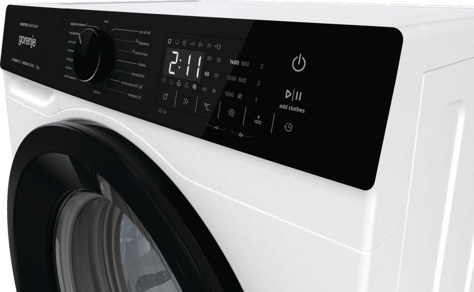 Програми:Синтетика, Віджимання, Пухові речі, Бавовна, Вовна, Мікс, Сорочки, ополіскування, дитячі речі, Щоденне прання, Самоочищення, Еко прання 40-60°, Інтенсивна, Екстрагігієна, Спортивні речі, Швидка 15'