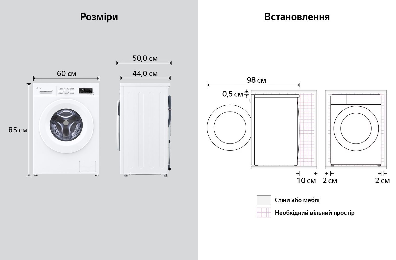 Особливості:Блокування від дітей, індикатор залишкового часу, Технологія ''6 рухів турботи'' 6 Motion, Система зменшення рівня вібрації, Система контролю піноутворення, Технологія контролю напруги (174-400 В), Блокування панелі керування від дітей, індикація незачинених дверцят, індикація помилок у роботі, затримка завершення циклу прання (3-19 годин), індикація режиму "Відкласти завершення", індикація режму "Віддалений старт", Завантаження додаткових програм через додаток LG ThinQ™ по Wi-Fi, Віддалене керування через додаток LG ThinQ по Wi-Fi, Мобільна діагностика SmartDiagnosis, Функція обробки парою Steam, Відкриття дверей: праворуч, Автоматичний перезапуск із збереженням попередніх налаштувань, 'Система зменшення рівня вібрації, Індикація завершення роботи, індикація етапу циклу прання, індикація обраних параметрів програми