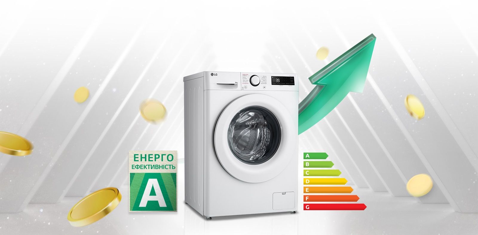 Пральна машина LG фронтальна, 8кг, 1200, A, 48см, дисплей, пара, інвертор, білий