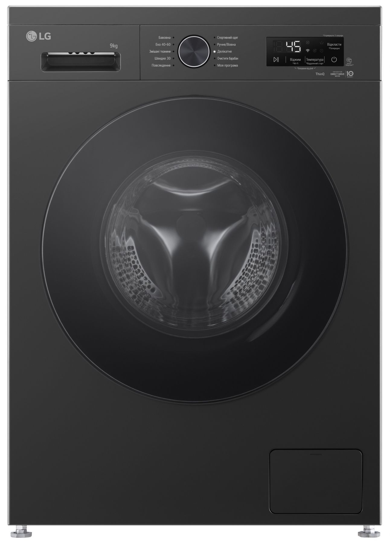 Пральна машина LG фронтальна, 9кг, 1400, A, 55см, дисплей, пара, інвертор, чорний
