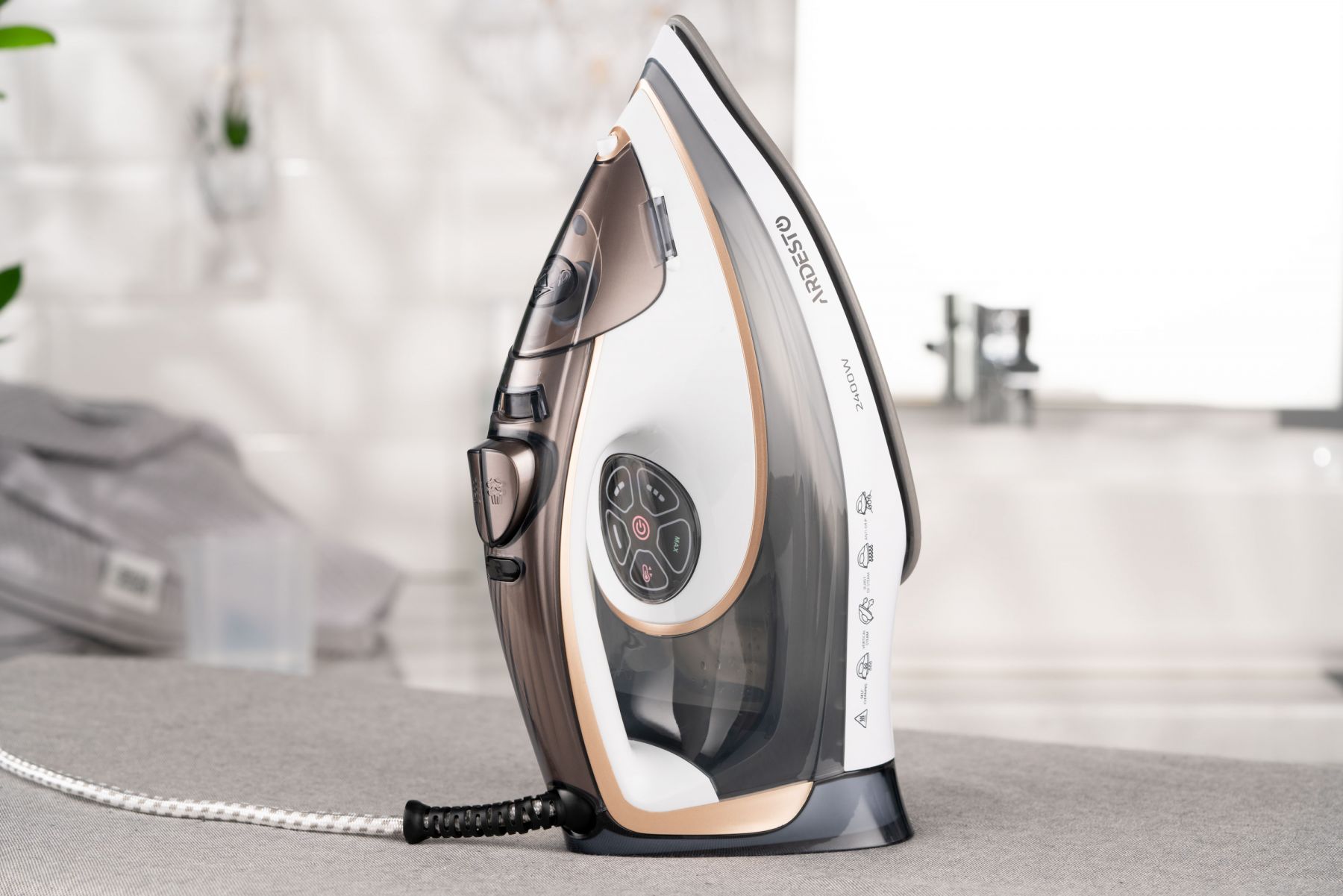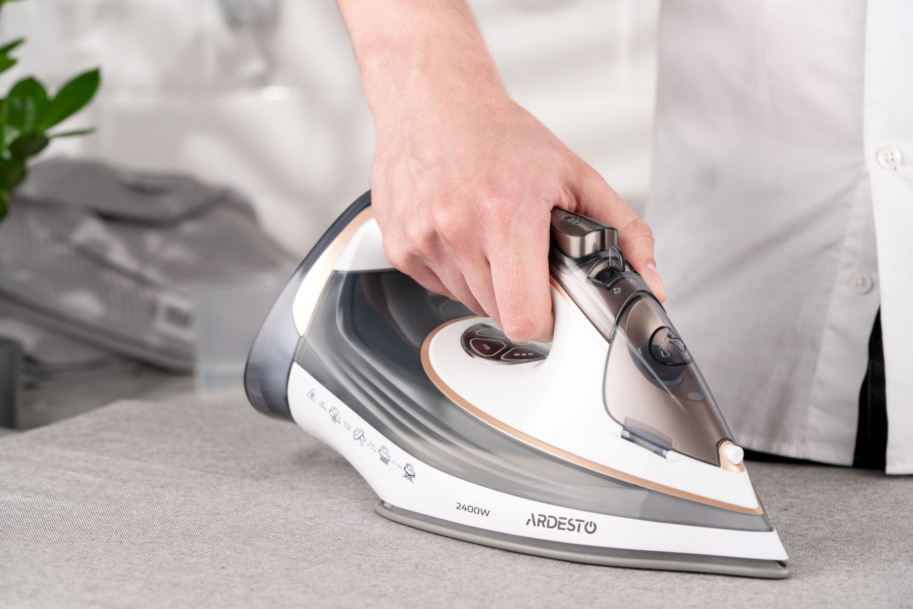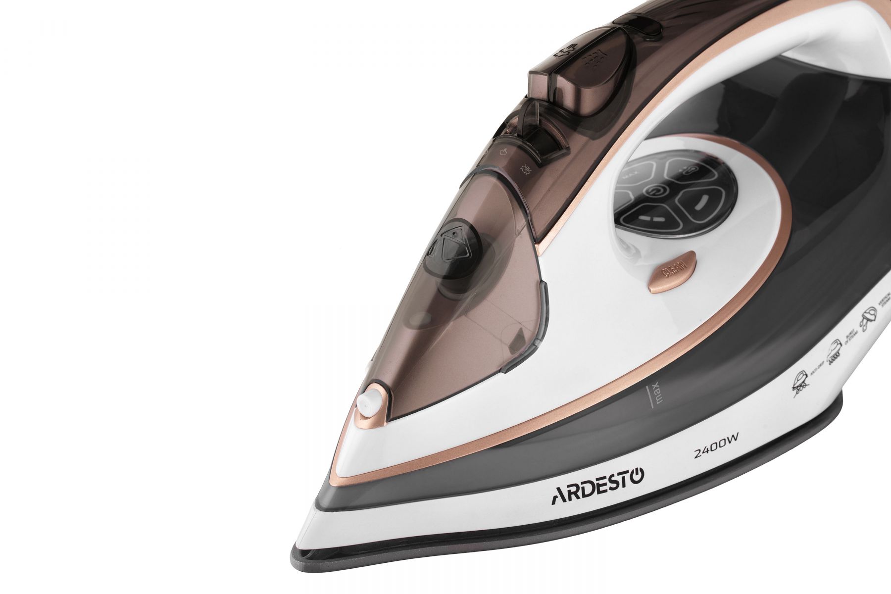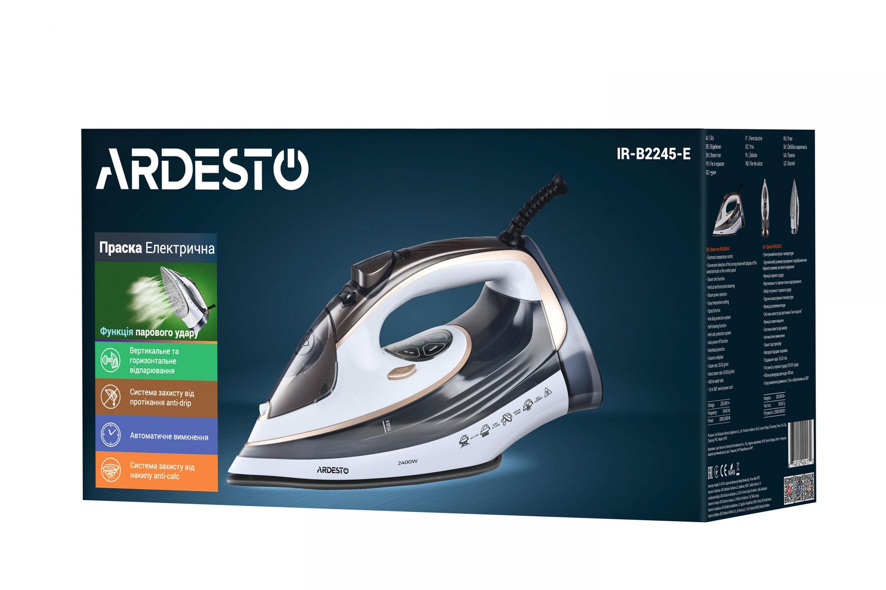 Праска Ardesto IR-B2245-E, 2400Вт, 400мл, паровий удар, електр. керування, керам. підошва, біло-сірий
