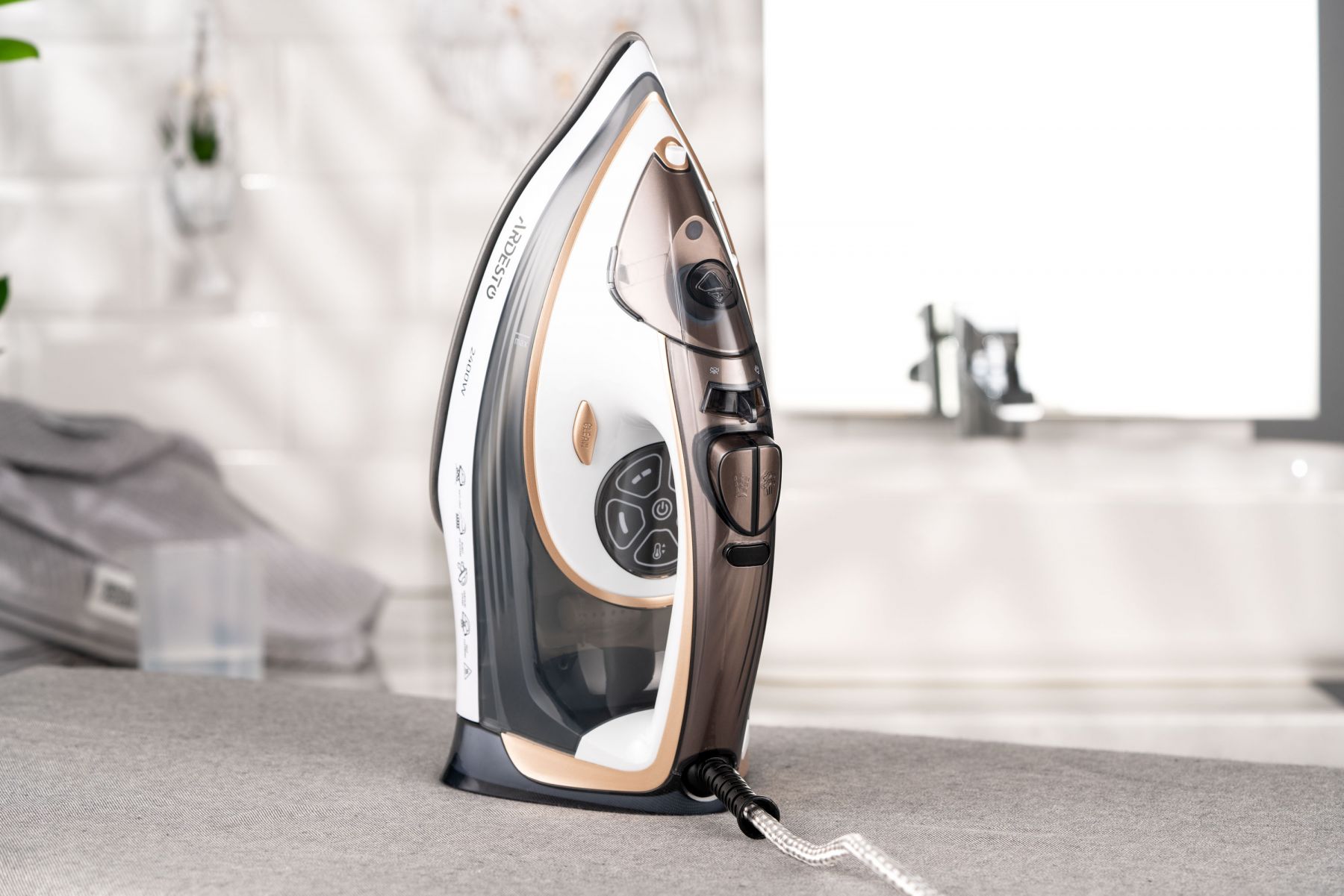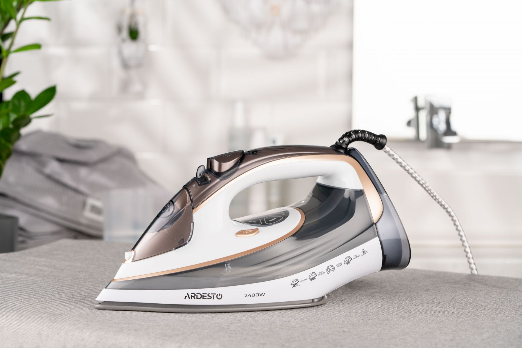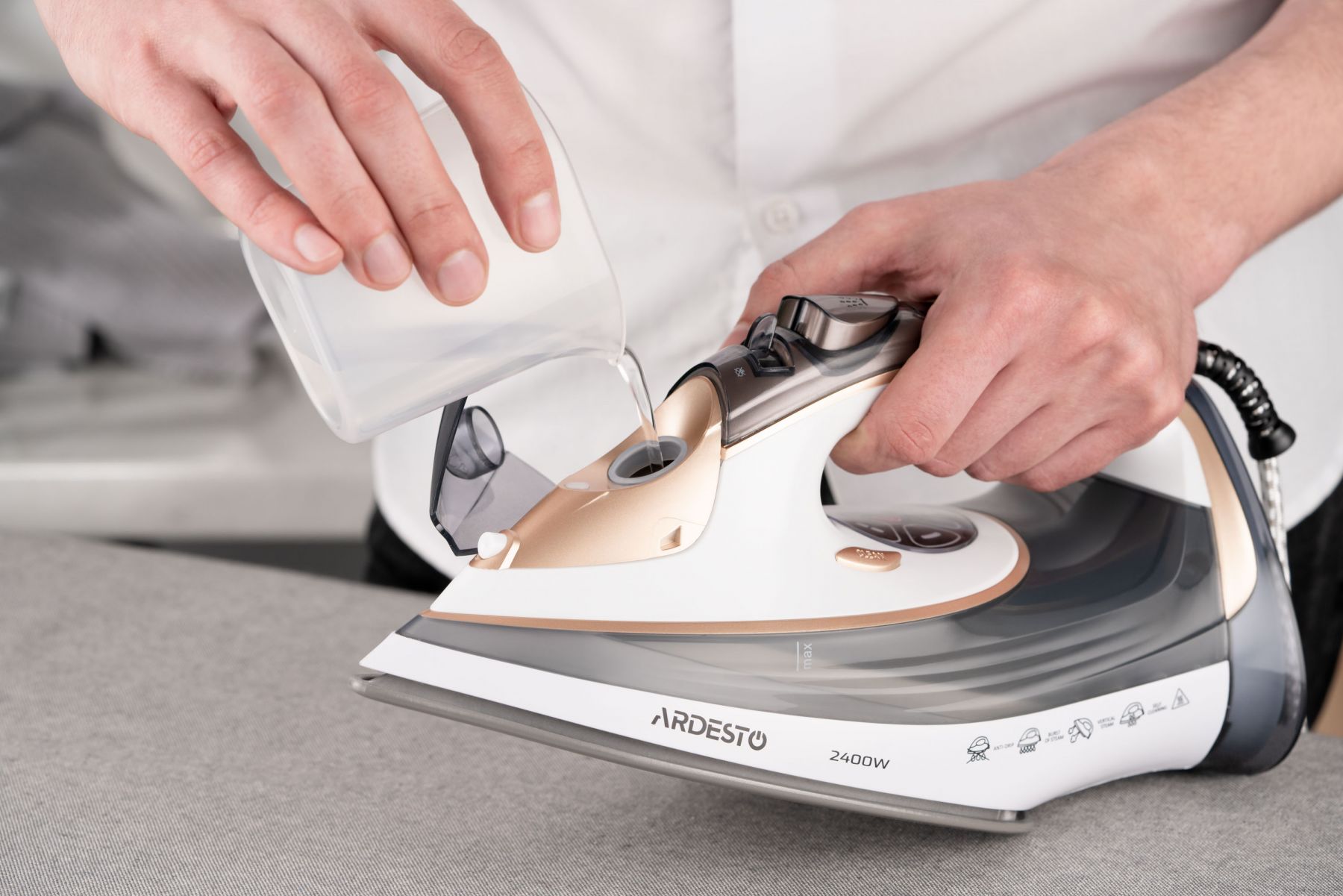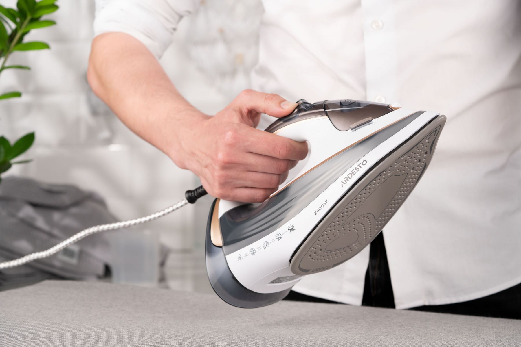 Праска Ardesto IR-B2245-E, 2400Вт, 400мл, паровий удар, електр. керування, керам. підошва, біло-сірий