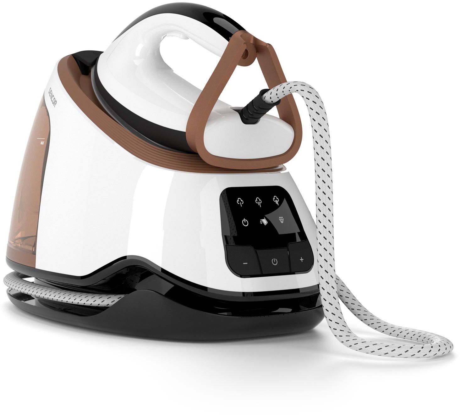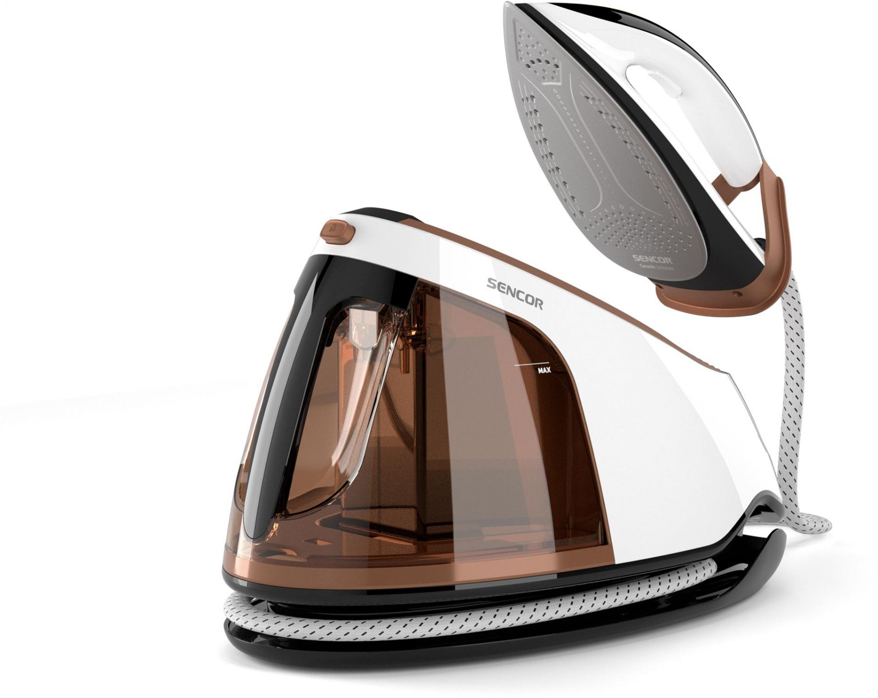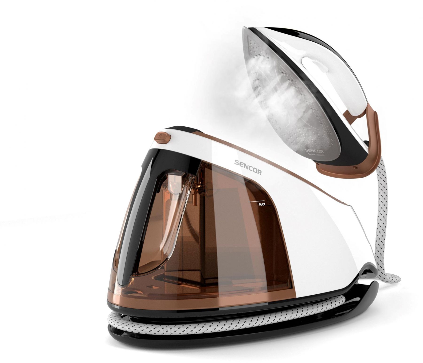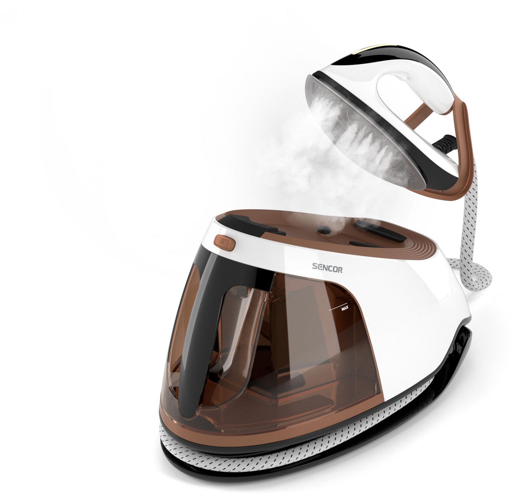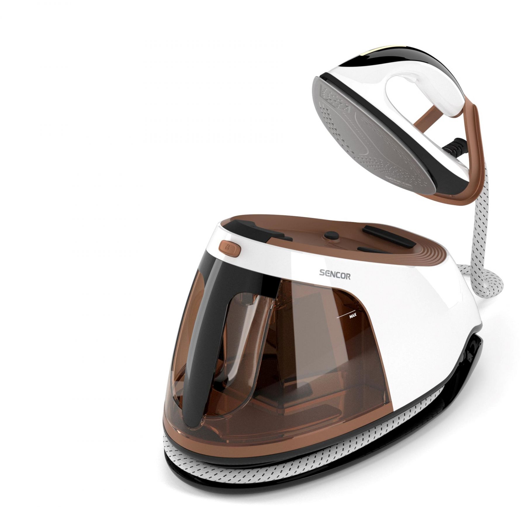 Праска-парогенератор Sencor, 3000Вт, 1500мл, паровий удар -430гр, постійна пара - 160гр, Anti-calc, керам. підошва, біло-коричневий