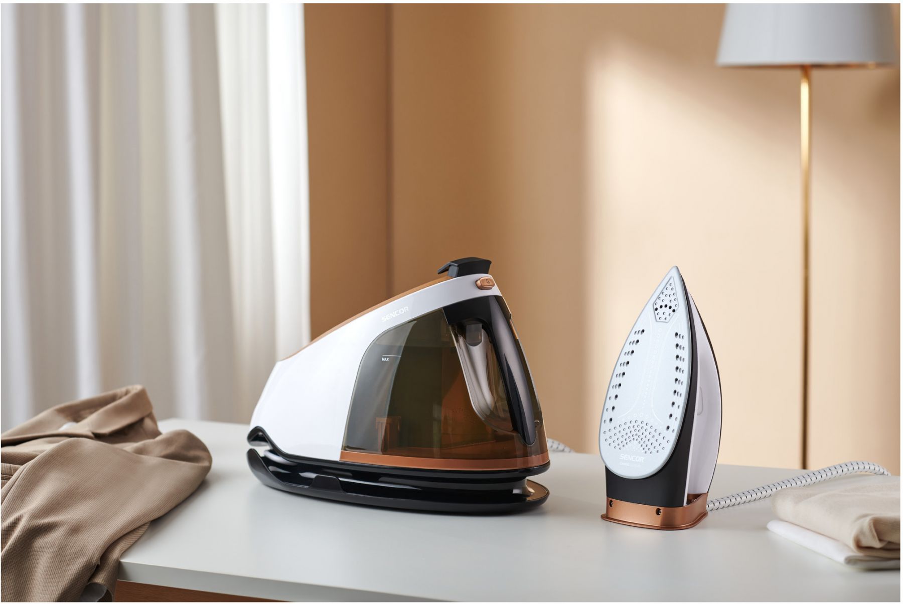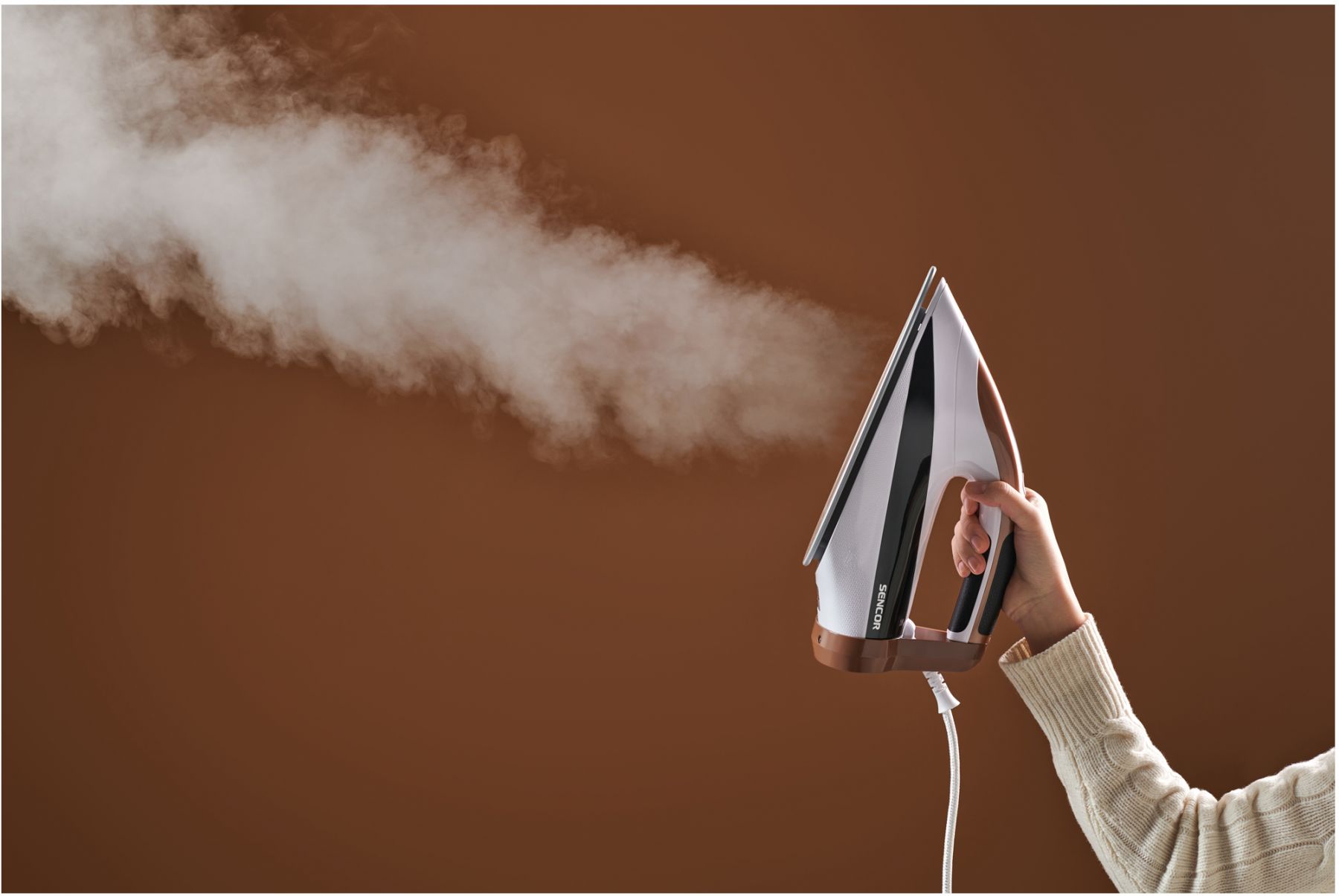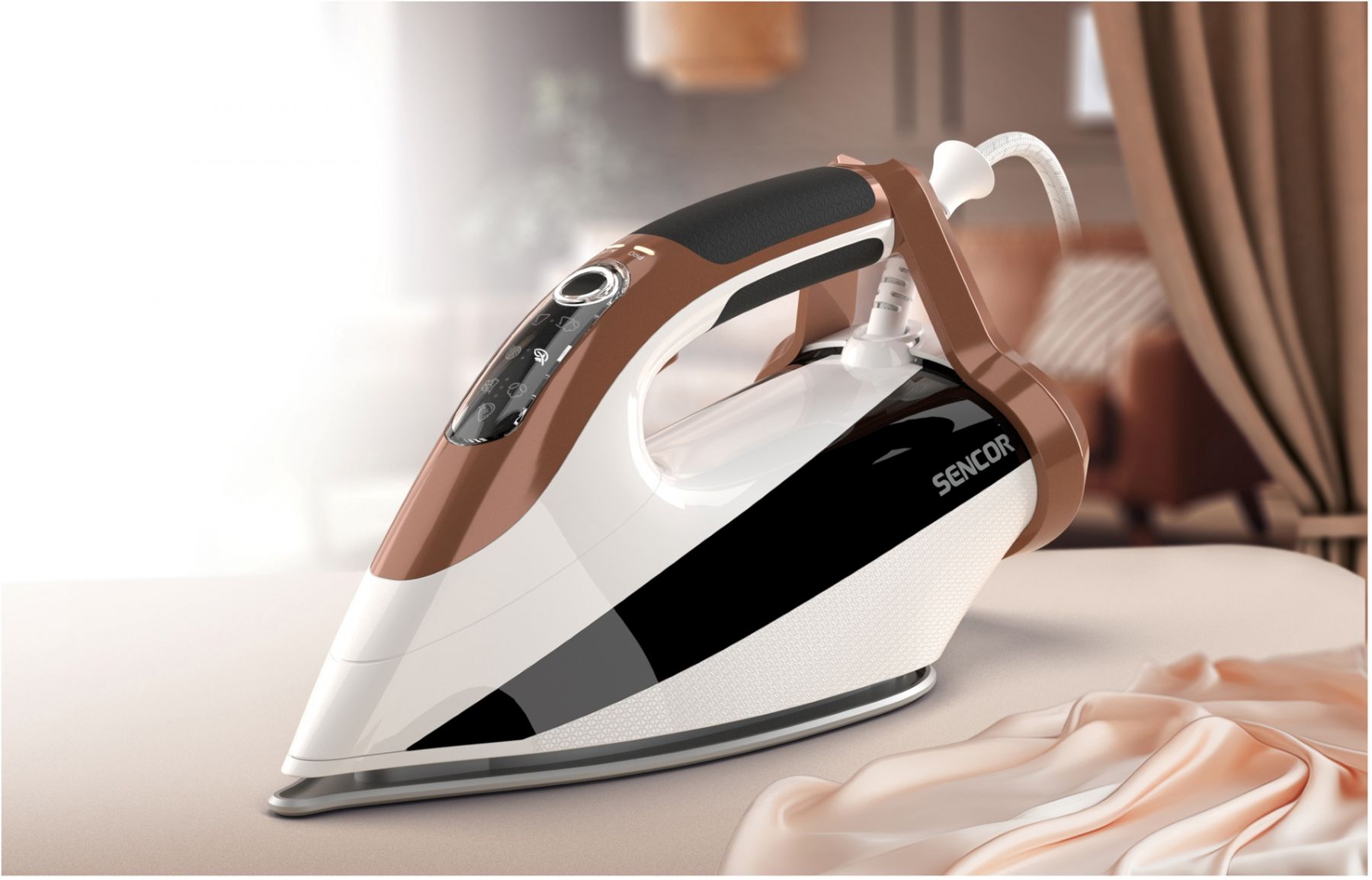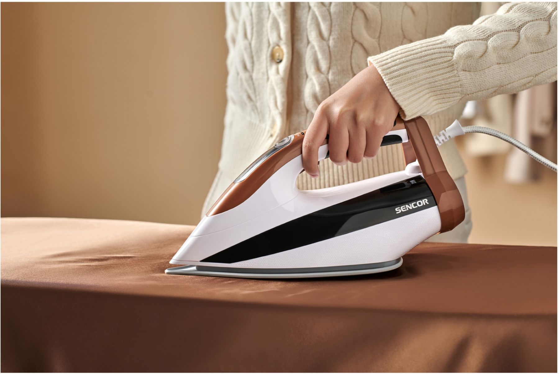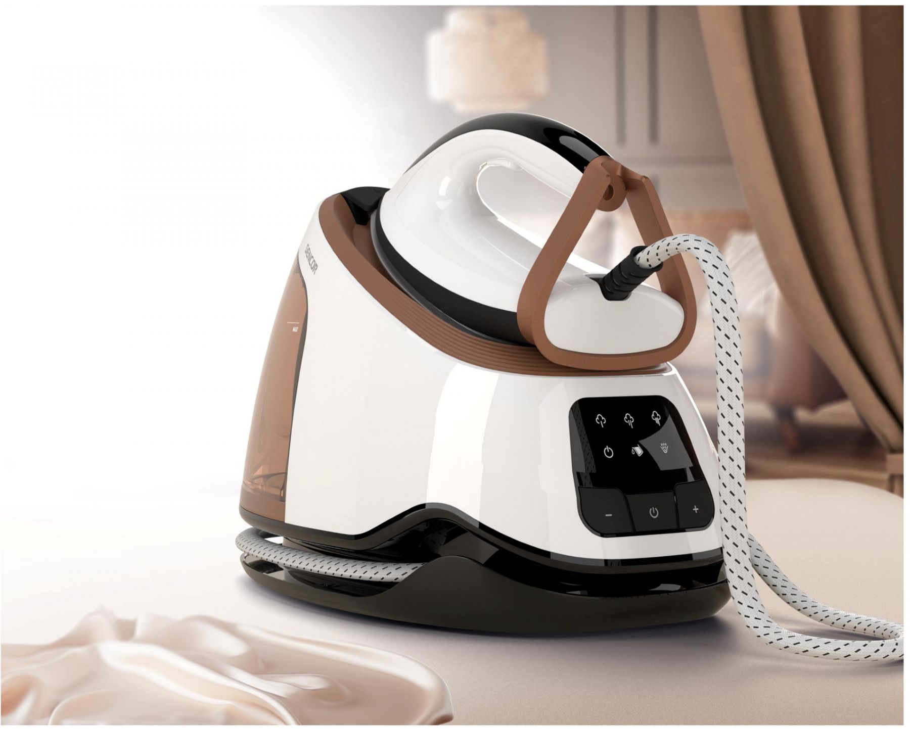 Праска-парогенератор Sencor, 3000Вт, 1500мл, паровий удар -430гр, постійна пара - 160гр, Anti-calc, керам. підошва, біло-коричневий