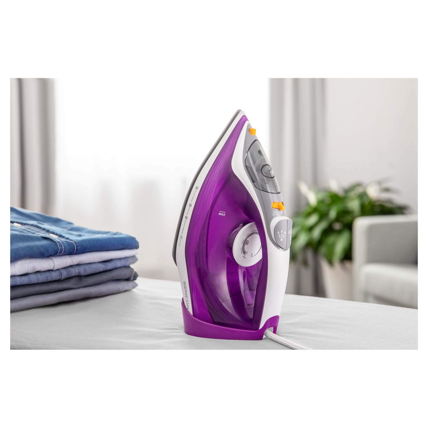 Праска Sencor, 2400Вт, 260мл, паровий удар -120гр, постійна пара - 30гр, Anti-calc, керам. підошва, фіолетовий
