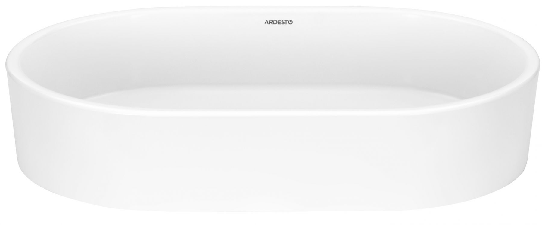Раковина, умивальник ARDESTO Elle, штучний камінь, овальна, без отвору для змішувача та переливу, 540x350x110мм, накладний, білий