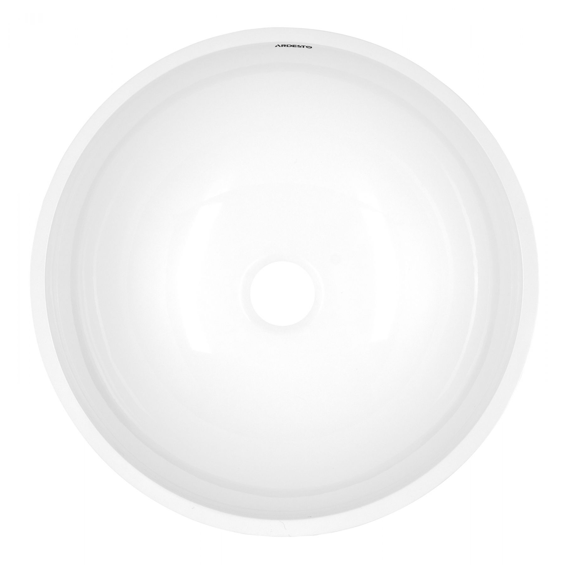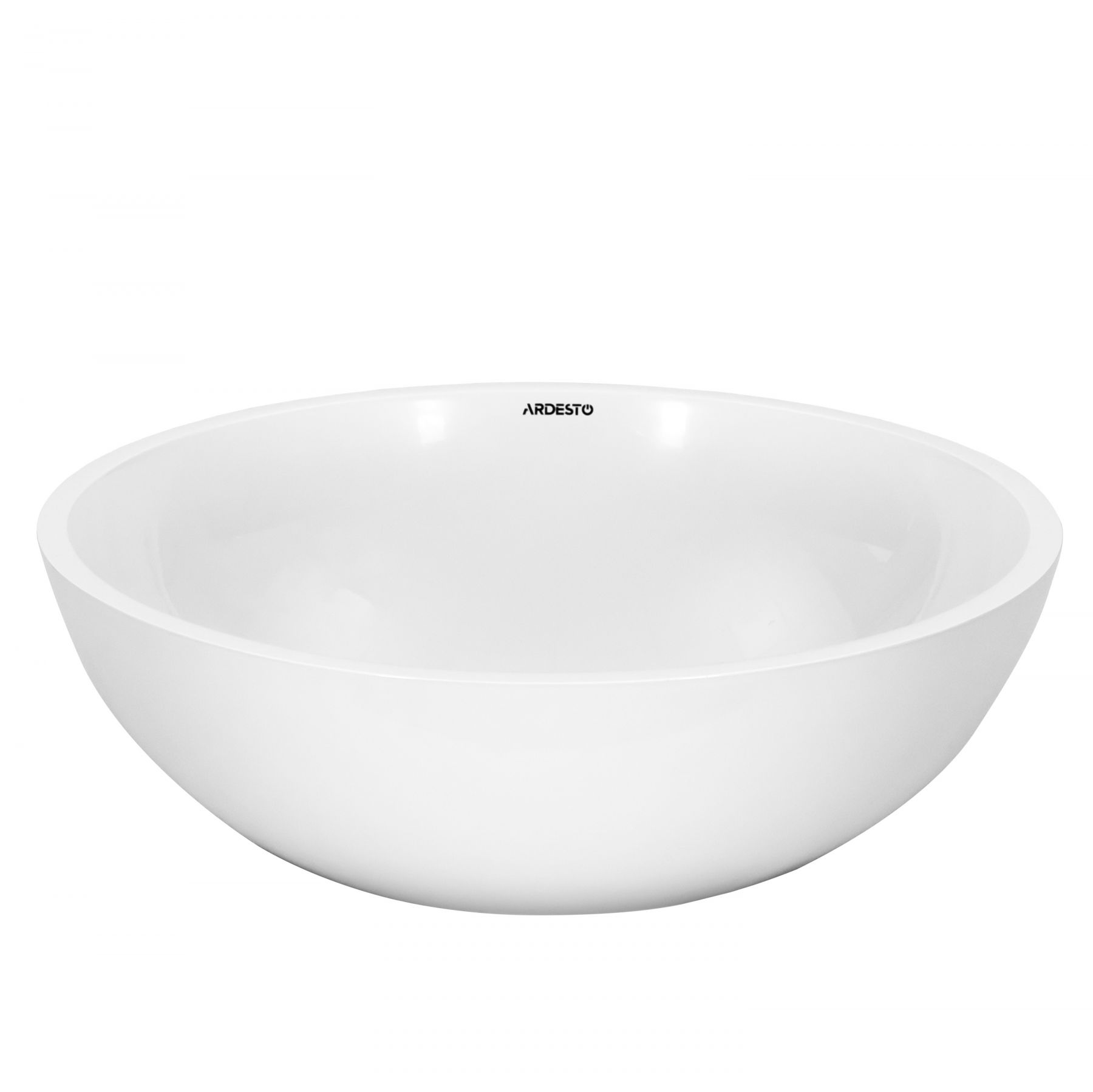 Раковина, умивальник ARDESTO Jade, штучний камінь, кругла, без отвору для змішувача та переливу, 420х150мм, накладний, білий