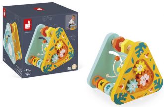 Цей яскраво-кольоровий трикутник перенесе вас у тропічну пригоду! Ця іграшка для раннього навчання обіцяє багато нових відкриттів для дитини. Ця дерев'яна іграшка ідеально підходить для 7 видів діяльності: лабіринт, дзеркало, шестерінки для обертання, гайки для закручування, рахівниці, дощова паличка та циліндри для вирівнювання. Діти віком від 1 року зможуть розвивати дрібну моторику, координацію та знайомитися з кольорами та формами! Фарба на водній основі. Виготовлений з деревини, сертифікованої FSCTM. Іграшка для дітей від 12 місяців.