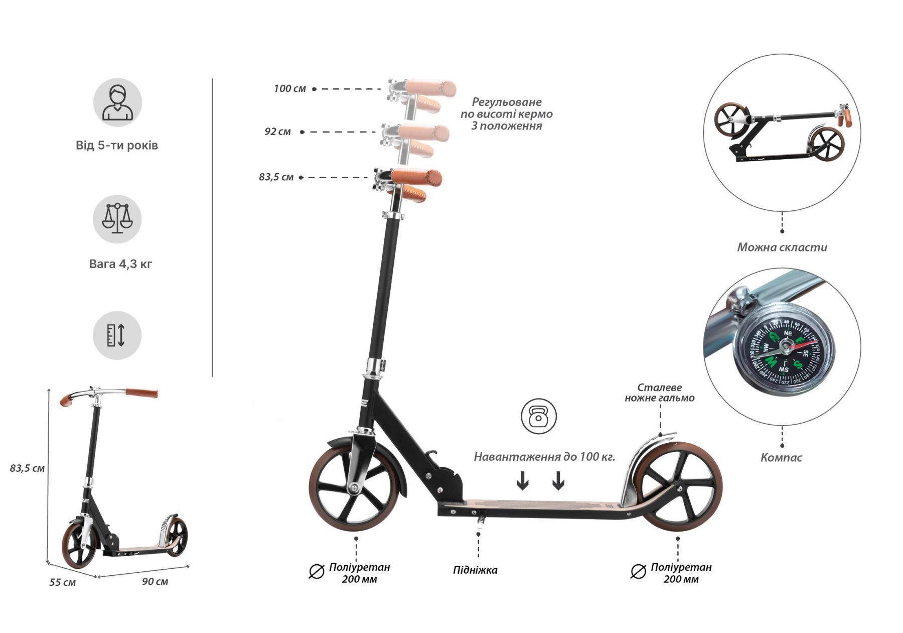 Положення регулювання висоти керма:83.5-100 см