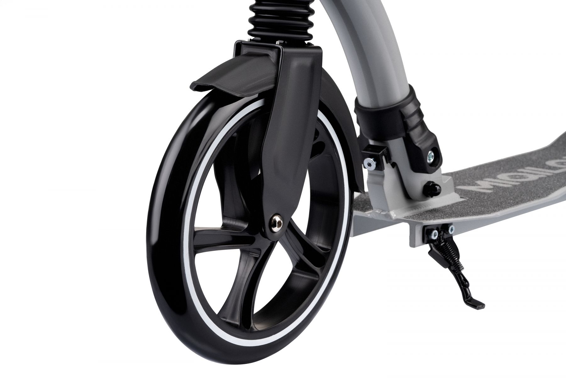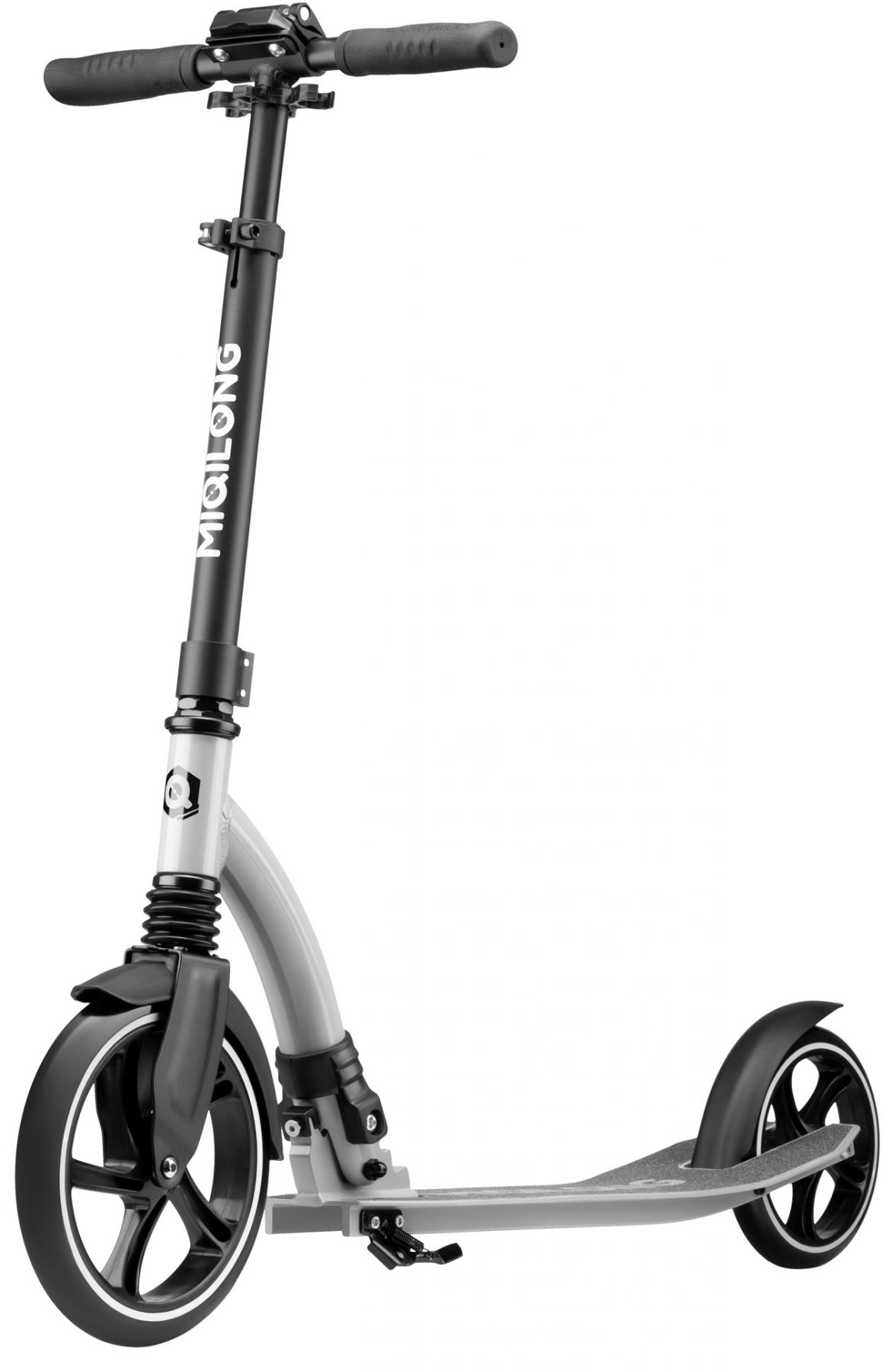 Міський самокат Miqilong Beagle поєднує в собі легкість, зручність та набір основних функцій, необхідних для комфортного повсякденного використання. Розрахований на користувачів зростом до 170 см та вагою до 100 кг. Завдяки вигнутій формі деки та низькому центру тяжіння модель Beagle чудово керується і буде максимально комфортною і для дітей, і для дорослих. Великі PU колеса легко подолають більшість нерівностей асфальту, а система амортизації на передньому колесі зробить їзду максимально комфортною.