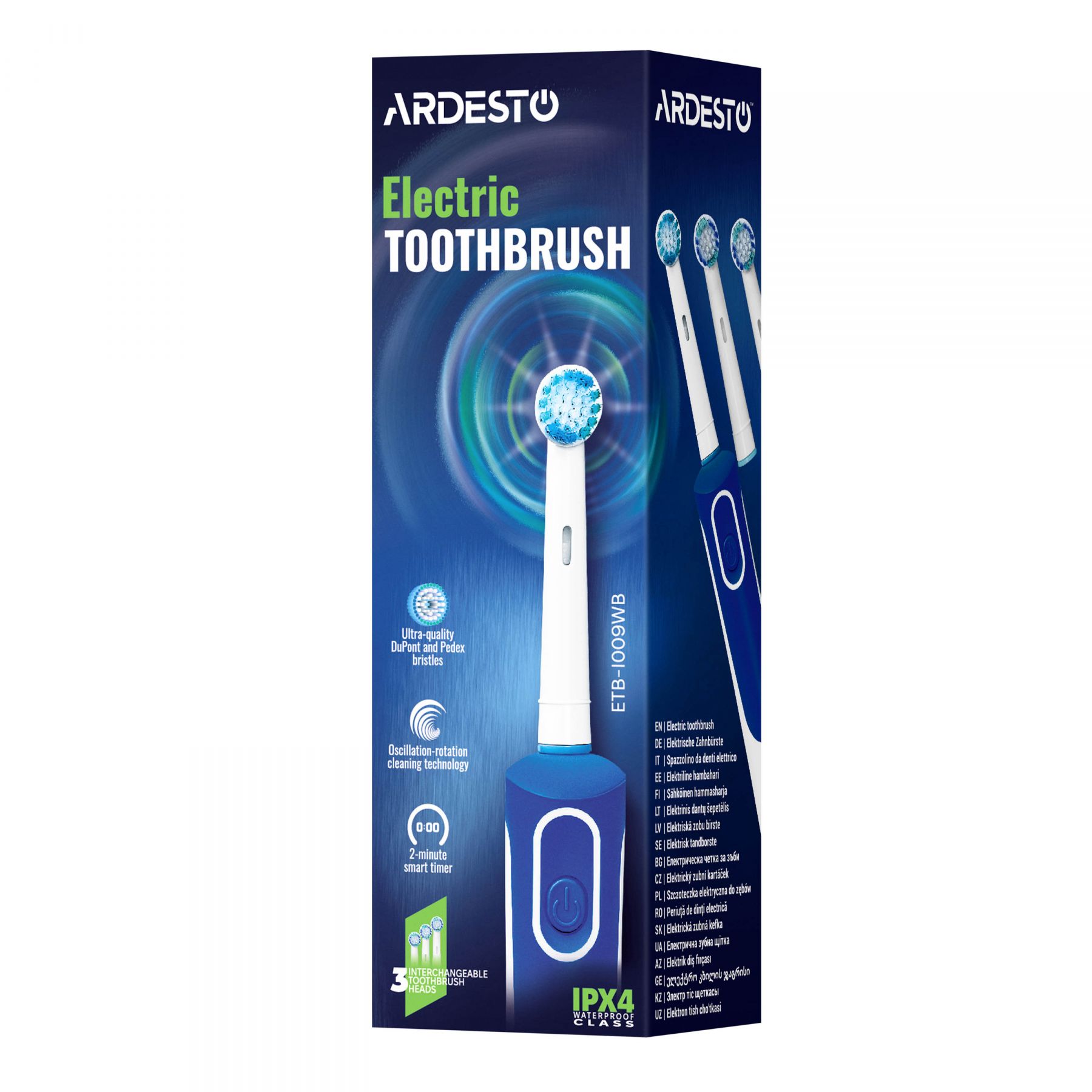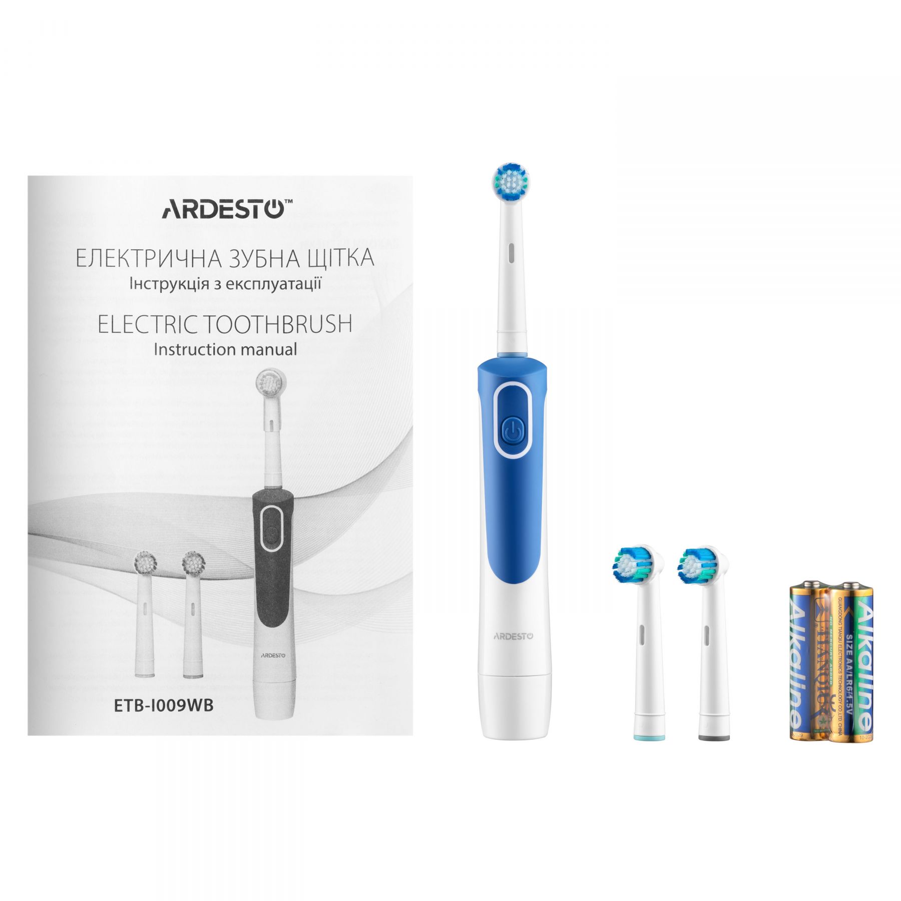 Щітка зубна електр. ARDESTO, ETB-I009WB, 4,5т. колив/хв, насадок-3, IPX4, білий+синій