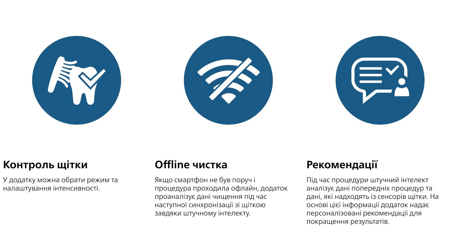 Додаткові функції:технологія Sonicare, функція підключення BrushSync, таймер, поступальних рухів 62 000 коливань/хв, підключення до смартфону, індикатор стану акумулятора, бездротове заряджання, датчик зношування щетинок, датчик сили натискання, BrushPacer, SmarTimer, 4 режимів