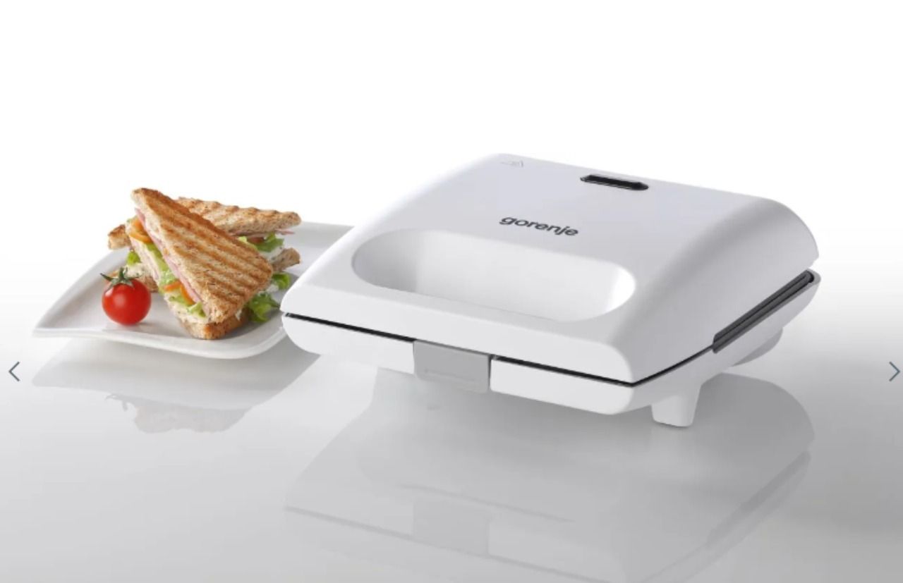 Сендвічмейкер Gorenje 700Вт, алюміній, 1 пластина-гриль , корпус-пластик, білий