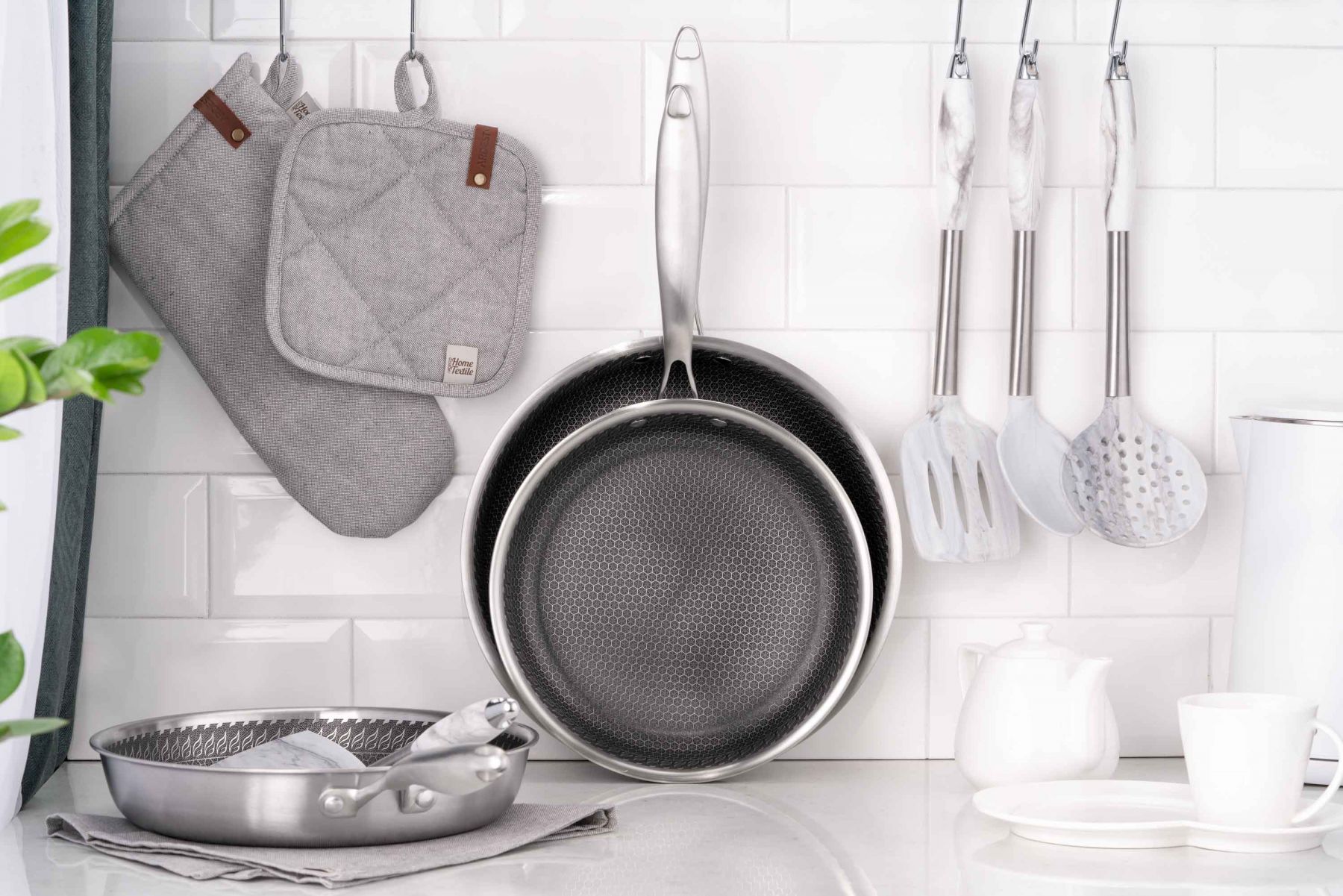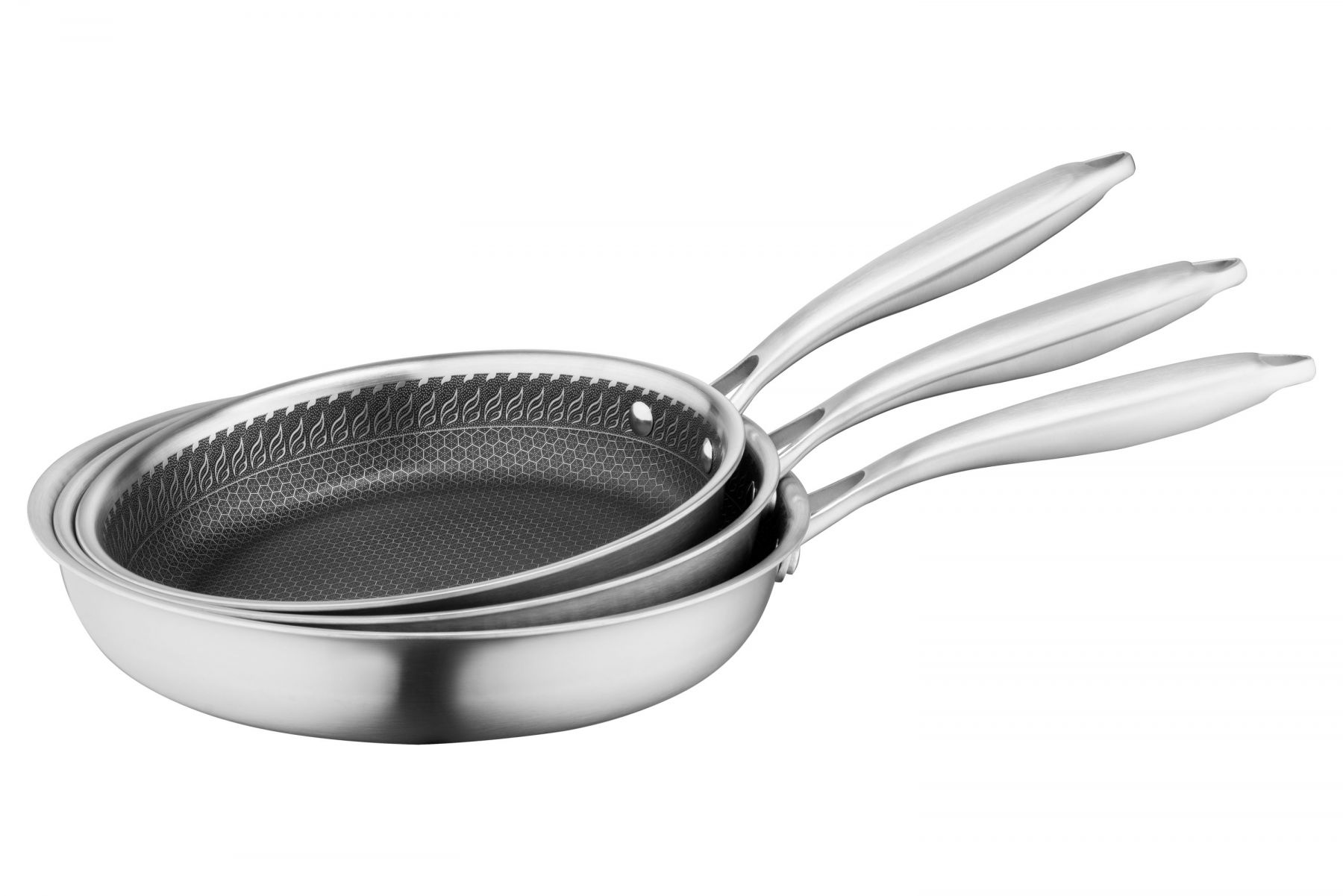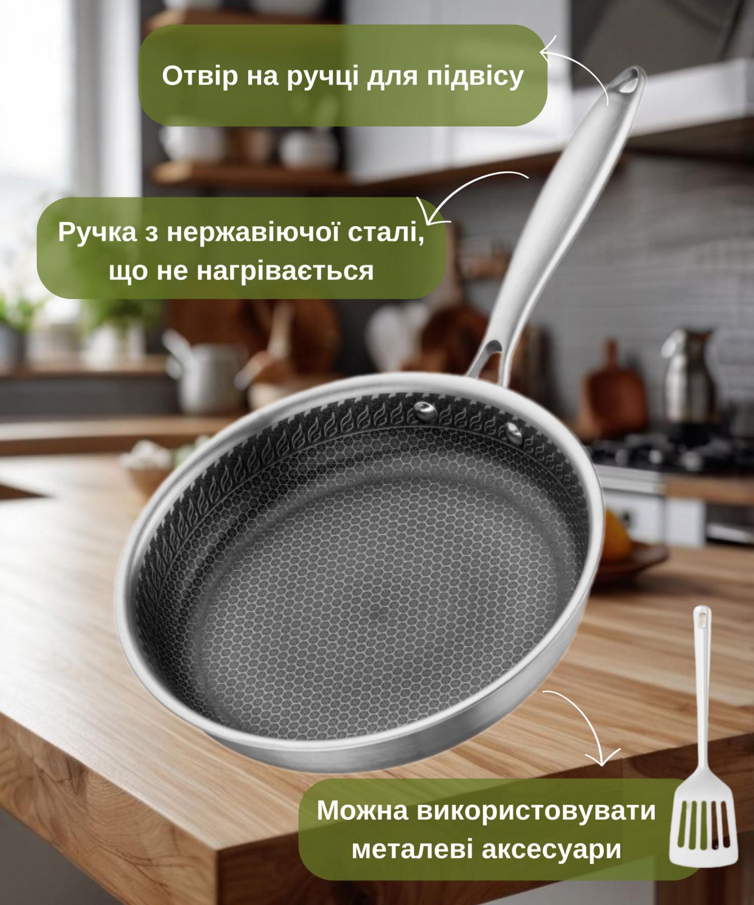 Матеріал сковороди:нержавіюча сталь (Технологія Triply: нержавіюча сталь 304+алюміній+нержавіюча сталь 430 (три шари))